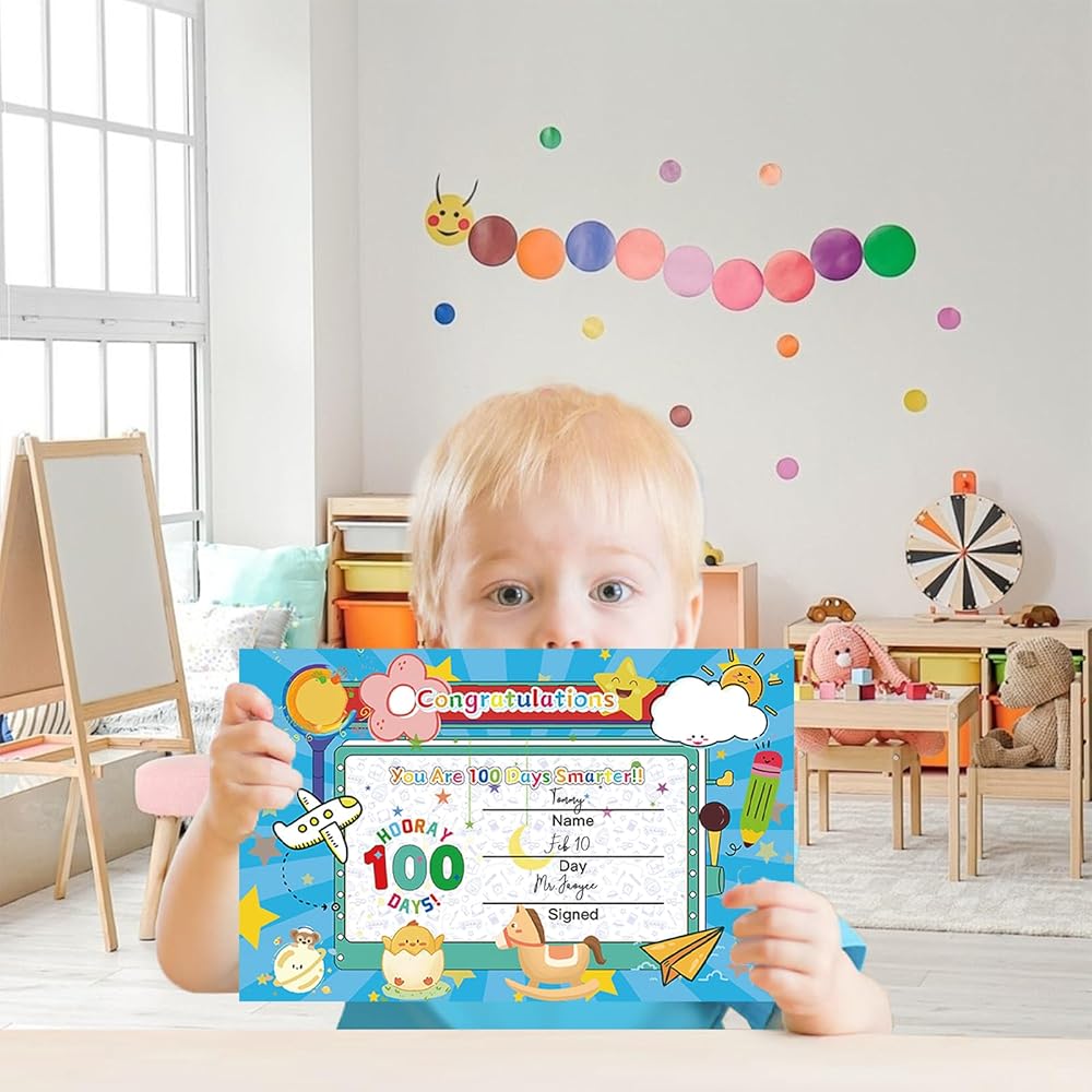 widely applicable: 100 days of school handed out by the school are perfect for reward competitions and celebration events,100th day of school project suitable for both elementary and high school gatherings to honor students' hundred-day academic achievements. Kids will be thrilled to bring these certificates home to show their parents, and this kind of recognition system can greatly boost their enthusiasm and self-confidence in completing tasks.