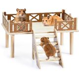 Two Parts - Platform and Hut: The package contains a wooden hamster platform and an adorable hamster house. The platform provides a stable and reliable surface for various activities, while the gerbil house offers a private space for the hamsters to relax