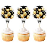 24PCS 2025 Graduation Cupcake Toppers Balloon Graduation Hat Class Of 2025 Cupcake Picks for 2025 Graduation Theme Kids Boy Girl Graduation Theme Birthday Party Supplies