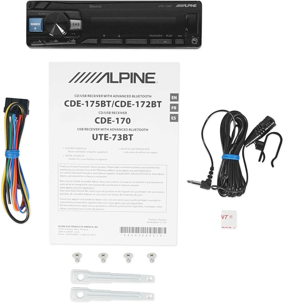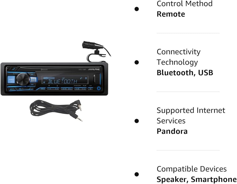 ALPINE UTE-73BT Digital Media Bluetooth Car Stereo Receiver w/USB+Absolute AUX Cable