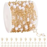 ♥Package Includes: 1 chain roll of 10 meters/ 32.8 feet 4mm round white faux pearl beads brass chain in the box.