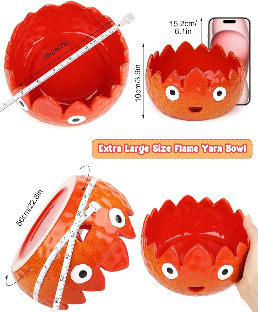 [Great Gift For Crocheters] Cute flame ceramic yarn bowl set with extra yarn and accessories is a great crochet supply tool and refill kit, and an excellent choice for crafters. This novel design flame yarn bowl for knitting is an ideal gift for Christmas/Mother's Day/Valentine's Day/Thanksgiving/Birthday/New Year for friends who want to learn crochet, the exquisite and lovely appearance can decorate your room and make a great impression.