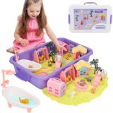 【Toddler Gift for Sensory Play】This sensory bin promotes early learning by encouraging hands-on play, developing sensory awareness, and fostering creativity. Kinetic sand kit for girls makes a thoughtful and engaging gift for birthdays, holidays, or special occasions. It combines fun with educational value, offering hours of imaginative play while supporting sensory development, making it the ideal gift for children ages 3 4 5 6 7 8 year old.