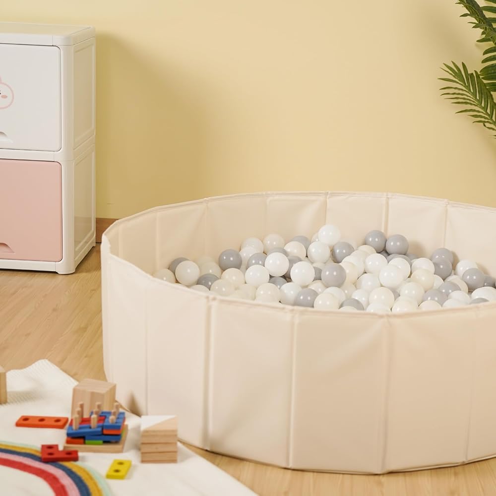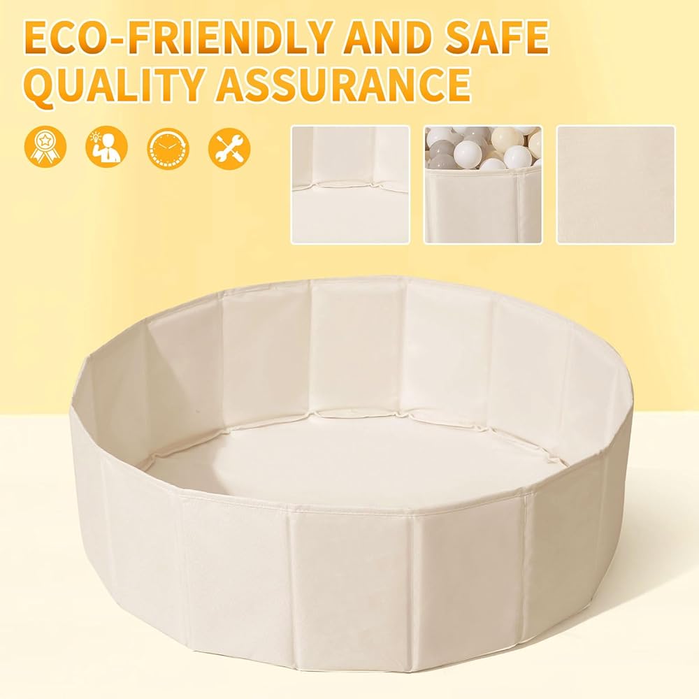 FOLDABLE&STURDY: The ball pit hassle-free assembly in seconds, surprisingly big after unfolding. Compact string bag for storage and portable on the road. Foldable kids ball pool for space-saving and easy to carry. Diameter: 40 Inches.