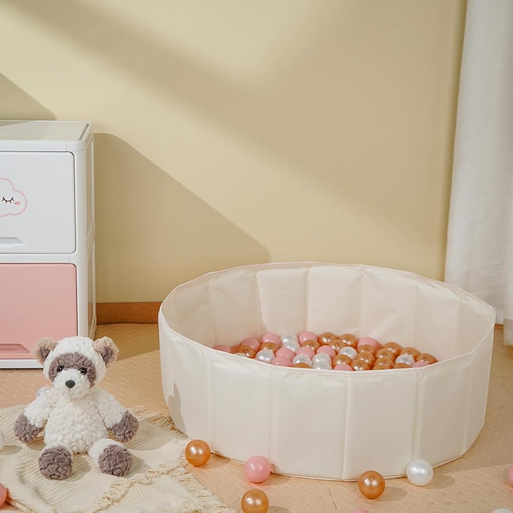 Ball Pit for Toddlers Babies Dogs Cats Iinfant Children, Foldable Ball Pits Play Tent, Crawl Playpen Ball Pool with Storage Bag, Surprise for Boys Girls Festival (Balls Not Included), Beige
