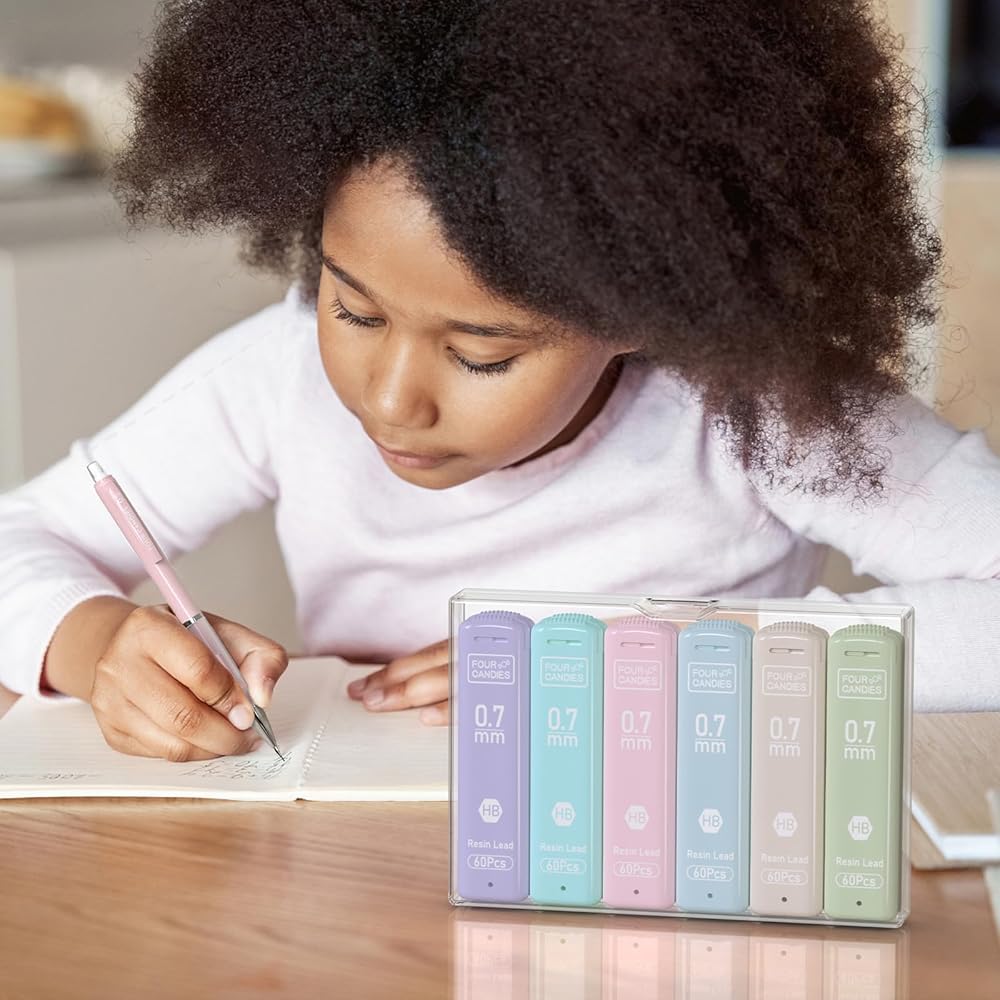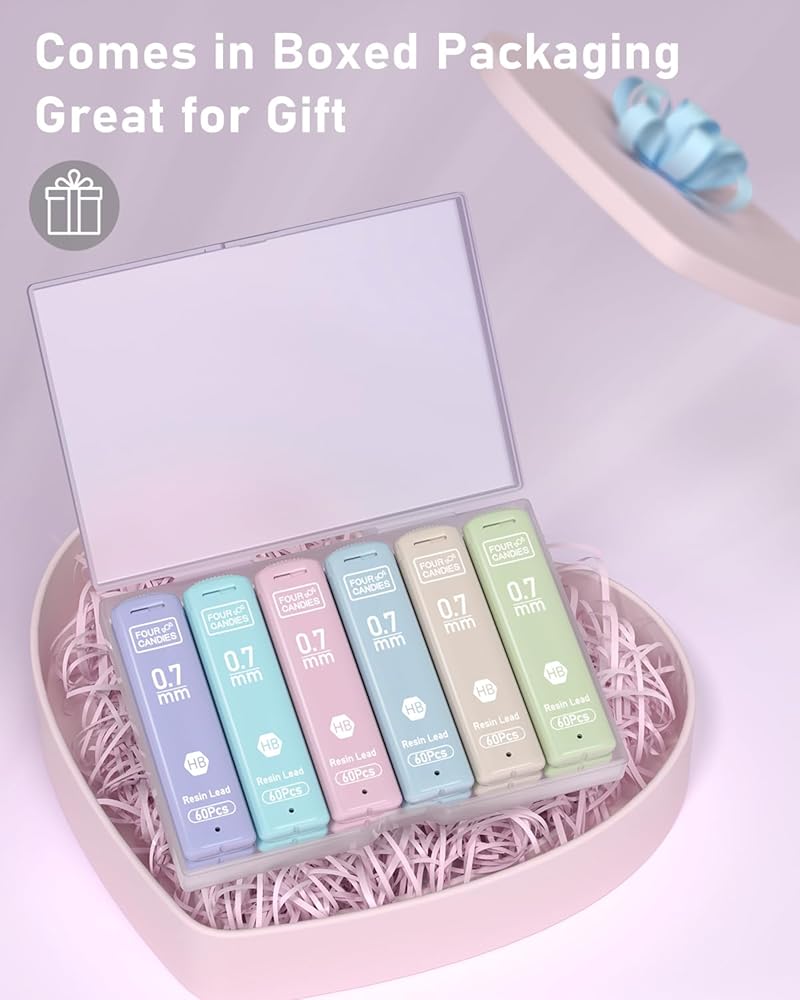 COLORFUL LEAD CASE: This set of pencil lead boxes is designed in 6 macaron colors. The fresh and adorable hues make it the top choice for students' school supplies. It's worth noting that the leads are made of black resin.