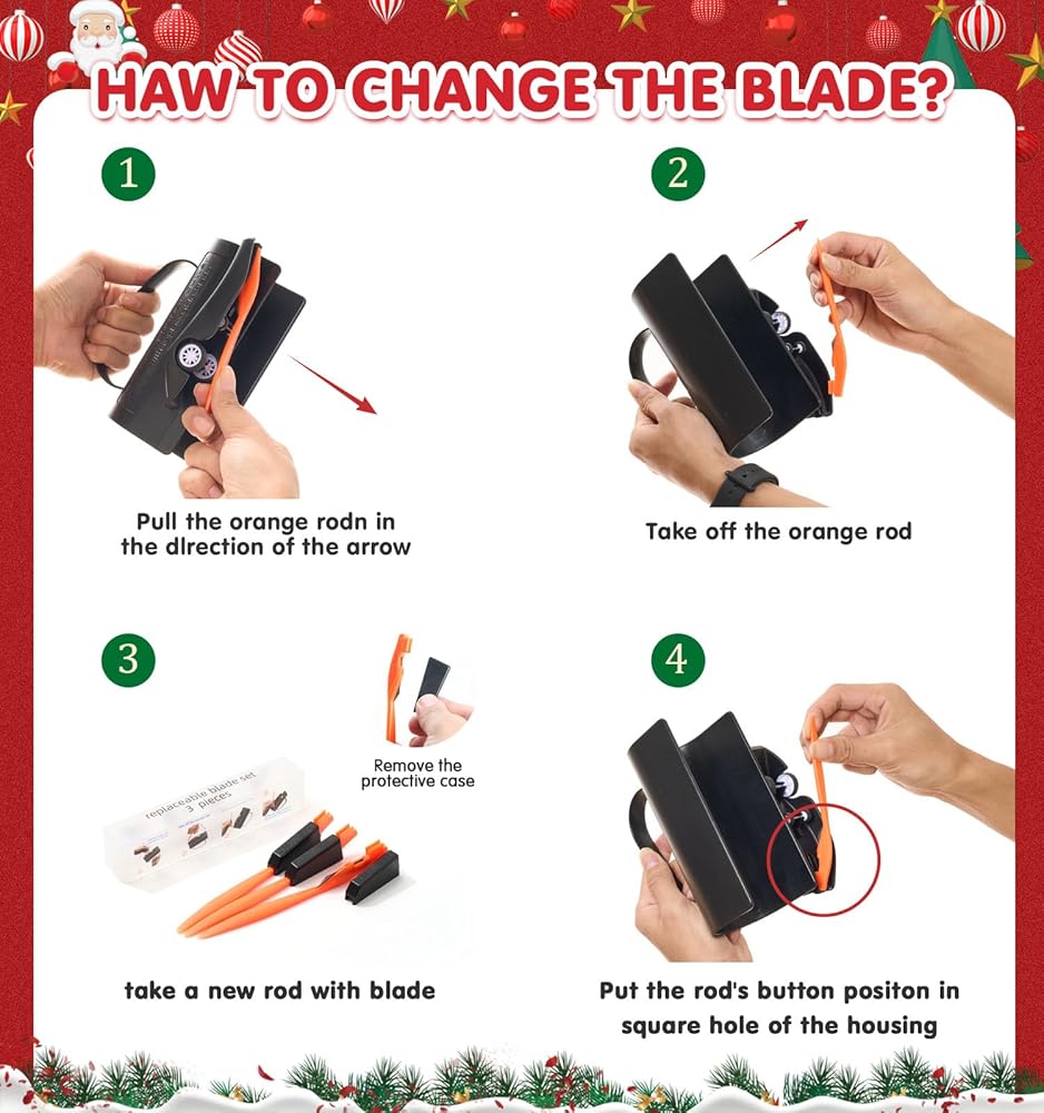 Package Included : Gift wrap cutter tool contains paper roll cutter and three sets of blade assemblies, with an instruction card. Christmas paper cutter itself is already equipped with blades and can be used directly. You will get a total of four sets of blade assemblies, each set of blades can make up to over 1,000+ cuts. This means that these blades can support you to easily complete tens of thousands of cutting jobs
