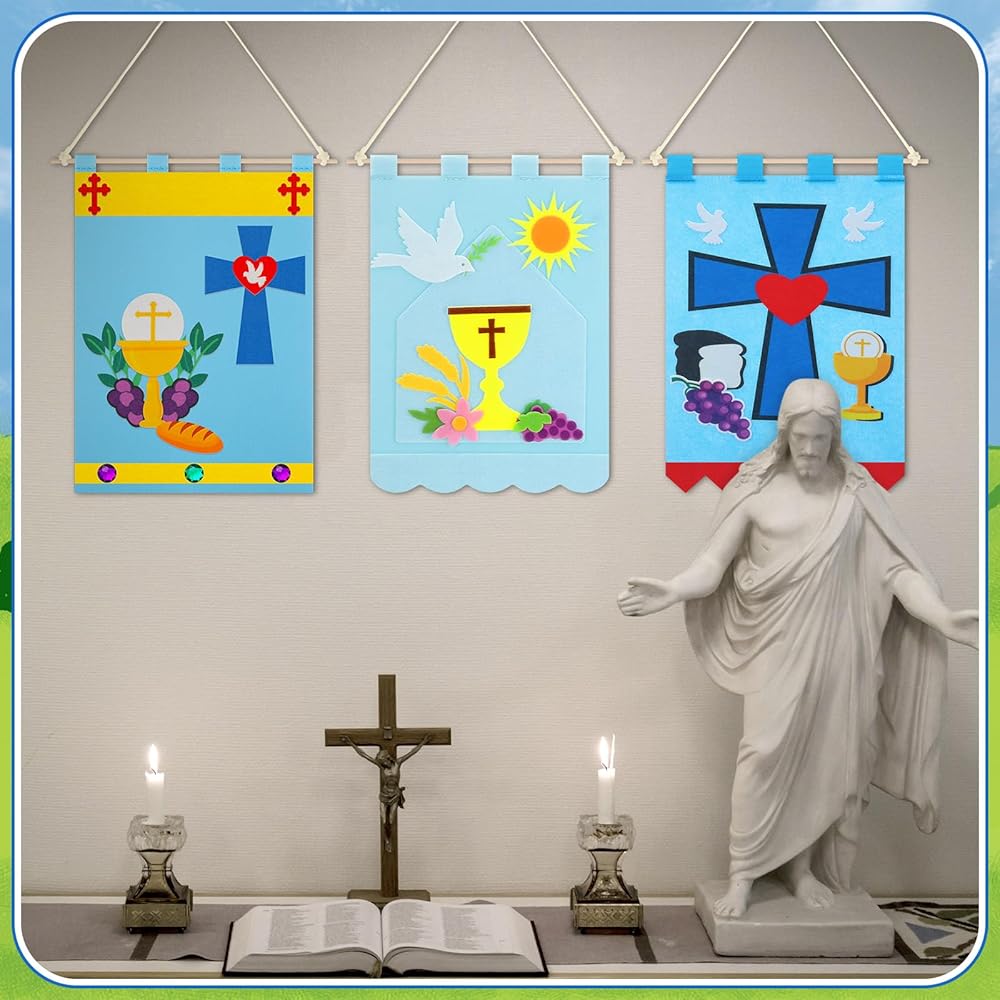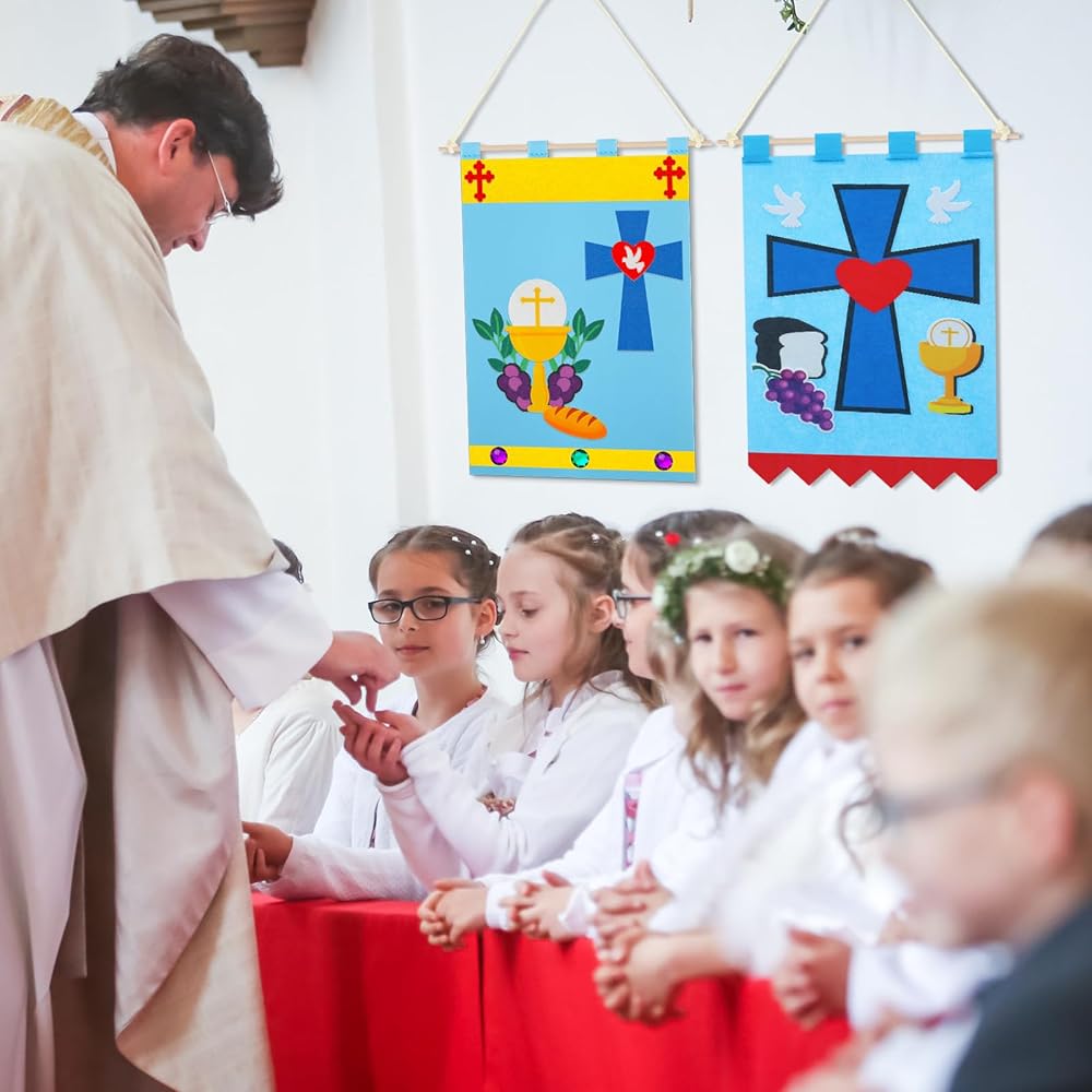 Our first communion banner kits come in a bulk package of 12. This ensures every participant can have their own set, multiplying the fun and interactive experience this kit provides. This also makes it an ideal choice for Sunday schools or church youth groups.