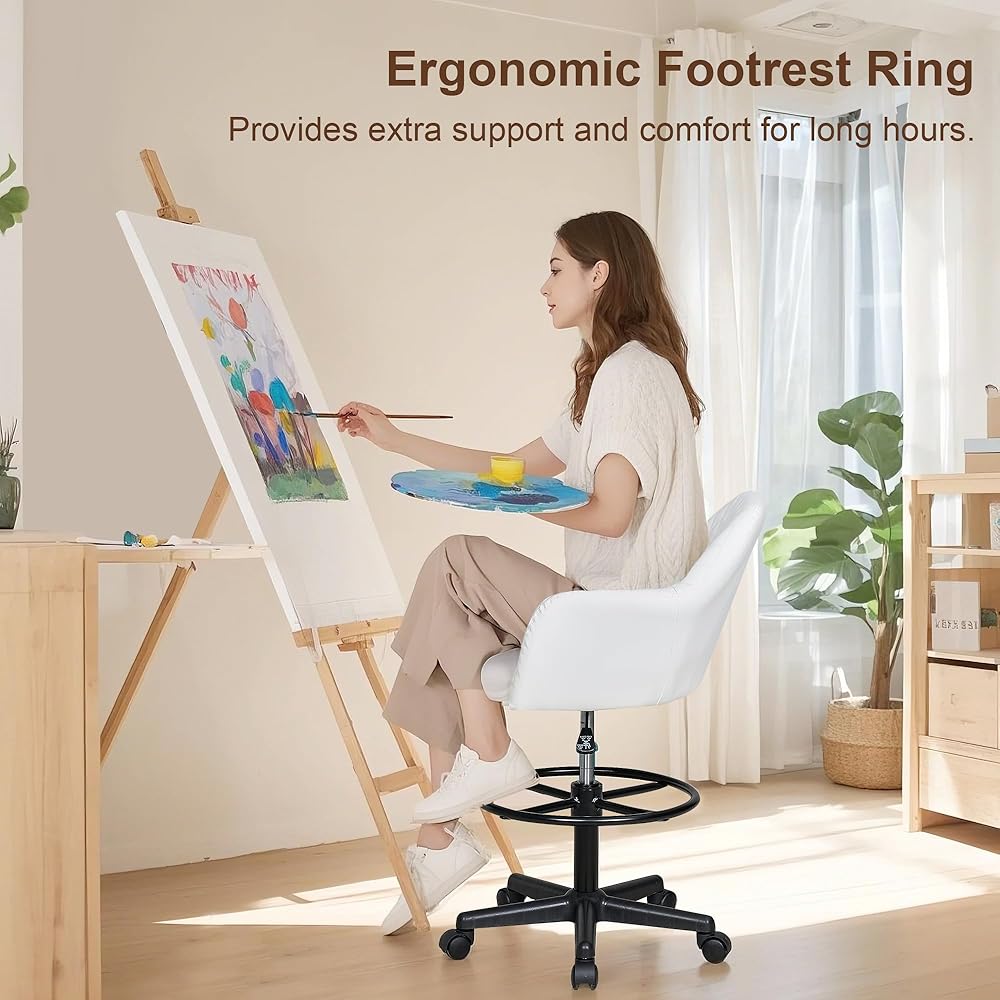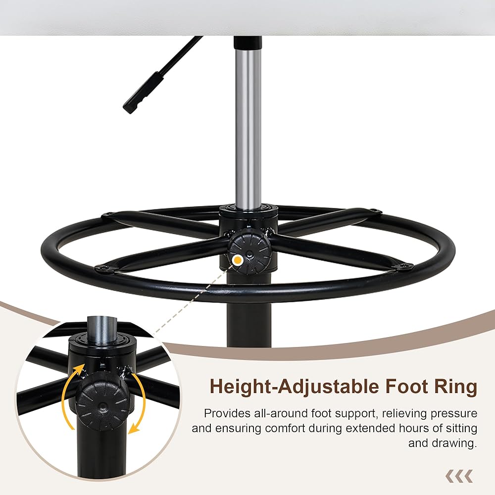 Height Adjustable: The tall drafting chair with footrest ring makes it ideal for standing desks, sitting desks, and bar settings. The ergonomic computer standing desk chair's 32.28”–40.16” height range ensures comfort and versatility for various users.