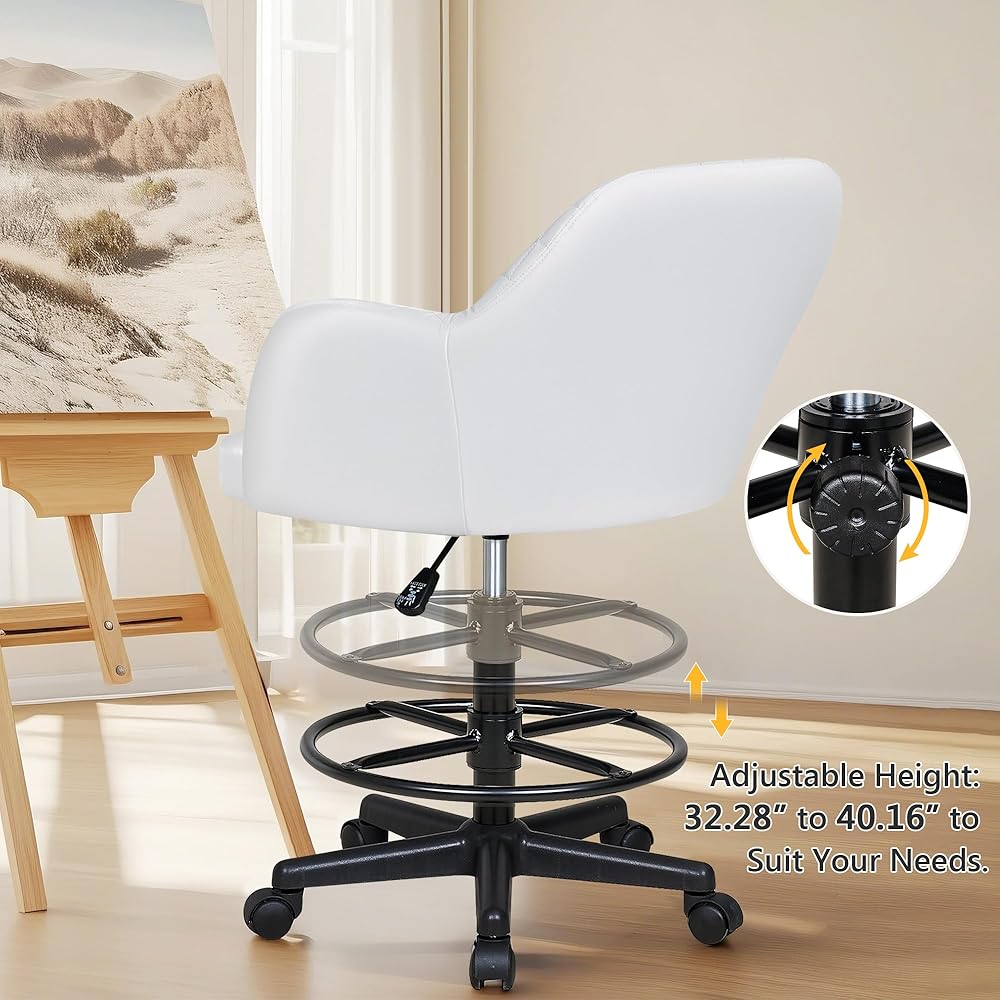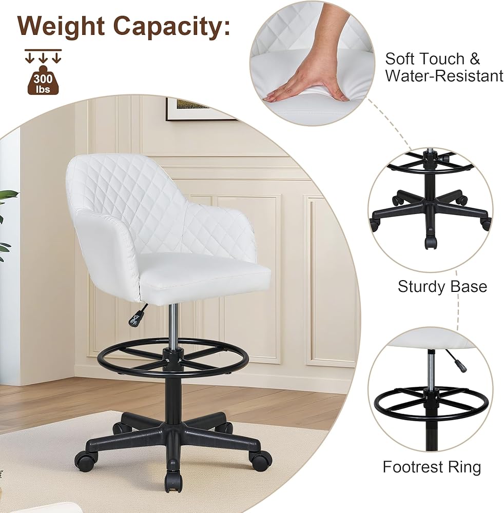 Outstanding Stability Safe: The sturdy five-claw base of the tall office chair ensures stability and durability, maintaining its strength even after prolonged use. With a weight capacity of up to 330 pounds, this PU drawing chair accommodates a wide range of users.
