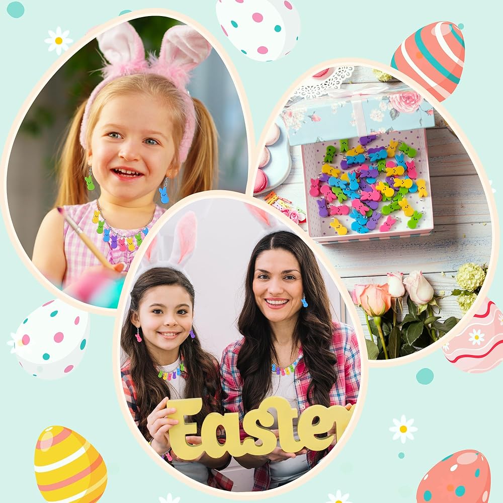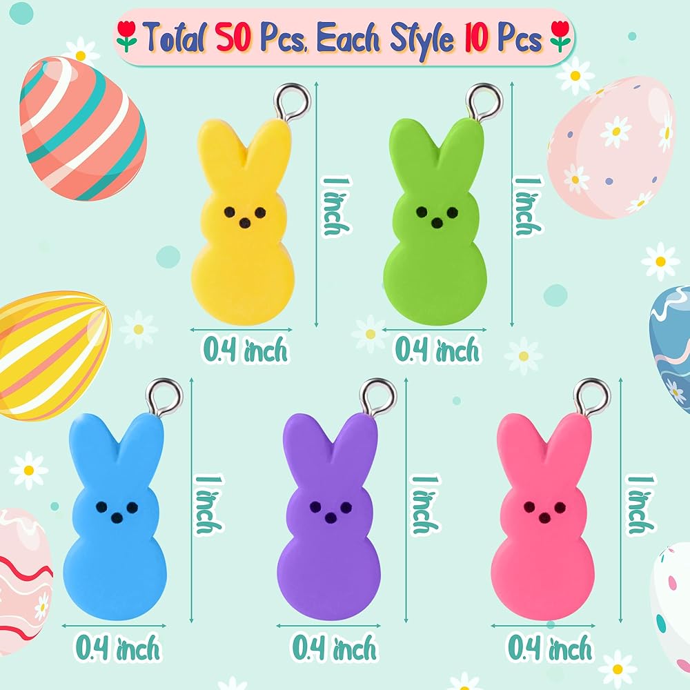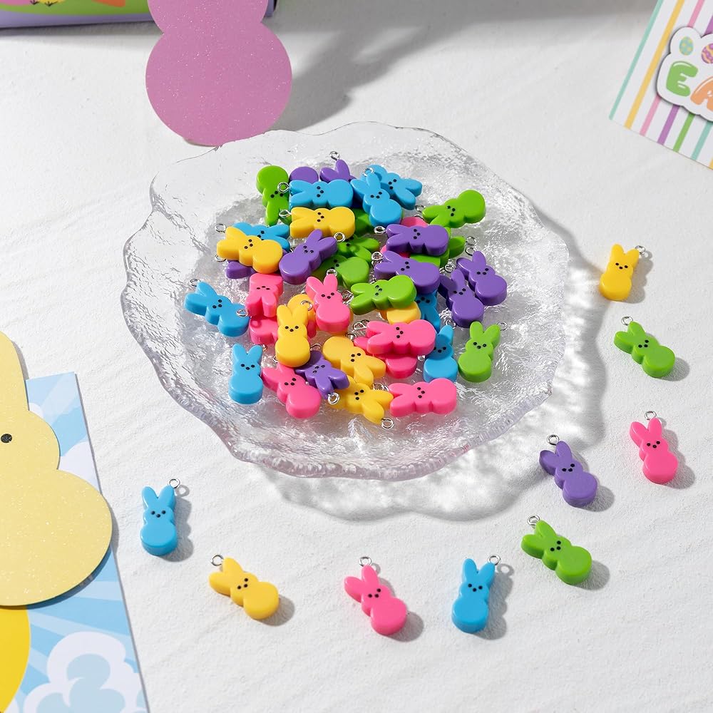 50Pcs Easter Bunny Peeps Resin Charms Pendants for Jewelry Making Earring Necklace Bracelet Making DIY Crafts Easter Spring Gift