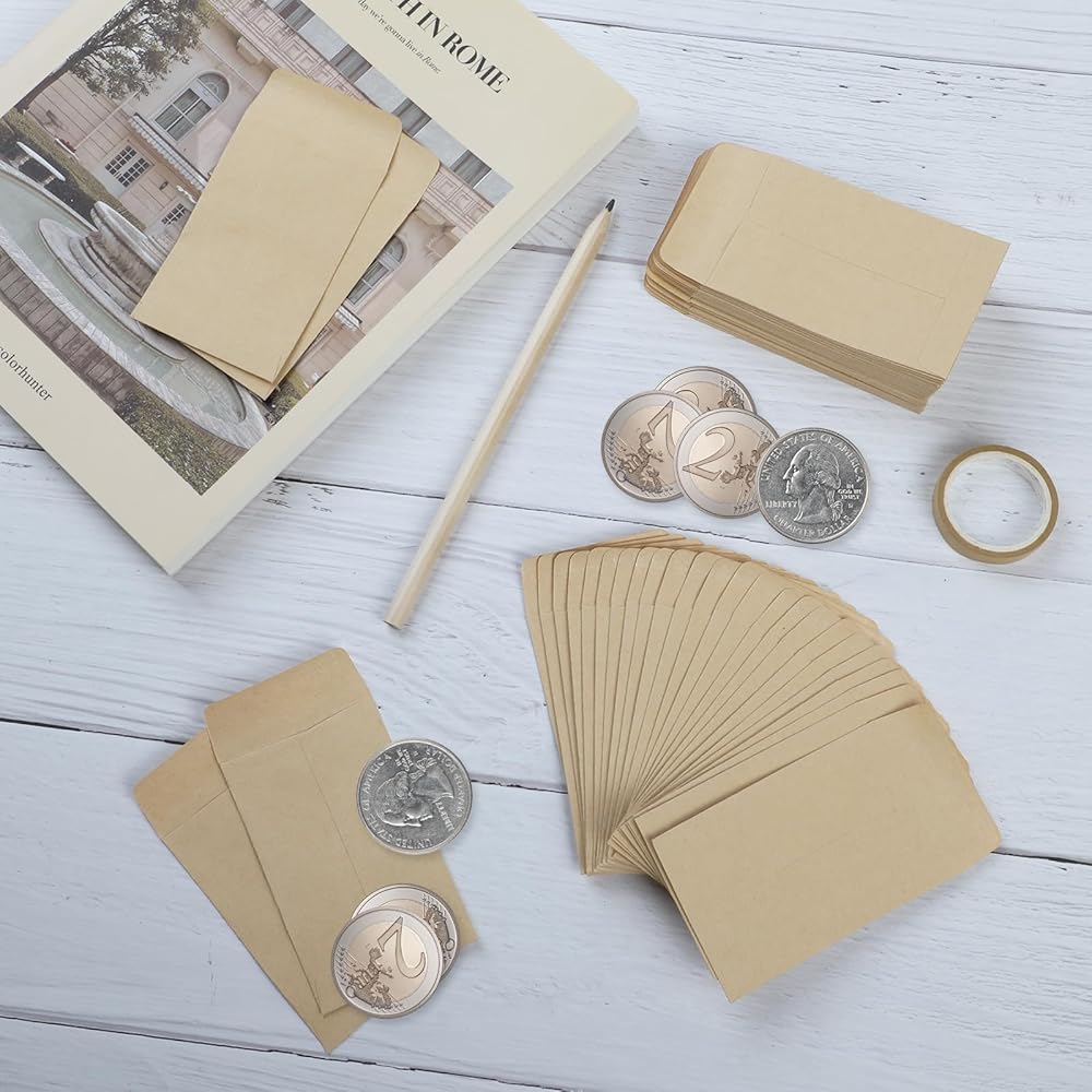 Made of high-quality kraft paper, these coin envelopes are perfect for storing coins, seeds, jewelry, and other small items.