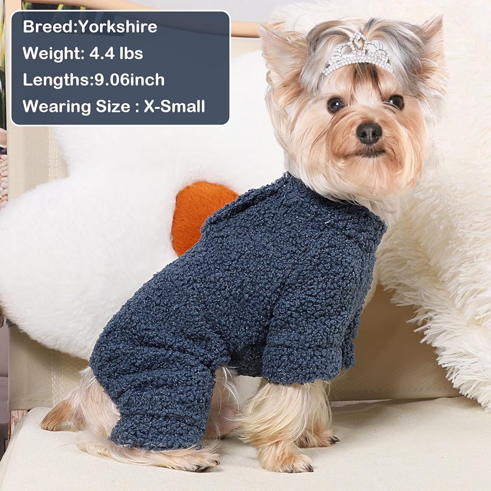 Fleece Dog Pajamas - Warm Fleece Dog Clothes - Winter Small Dog Sweater Coat - Cold Weather Dog Clothes for Small Dogs Boy or Girl