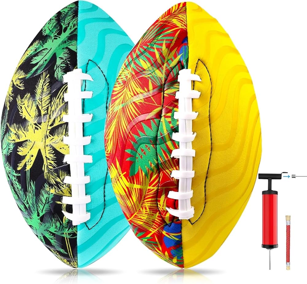 WATERPROOF:This football is 100% waterproof and chlorine resistant.This makes a great addition to your pool festivities.Durable Waterproof Football - Made with high quality inflatable bladder and water-resistant soft fabric. Long lasting and waterproof.It's built to withstand all kinds of weather conditions, making it a perfect football for kids and teens who love outdoor sports.