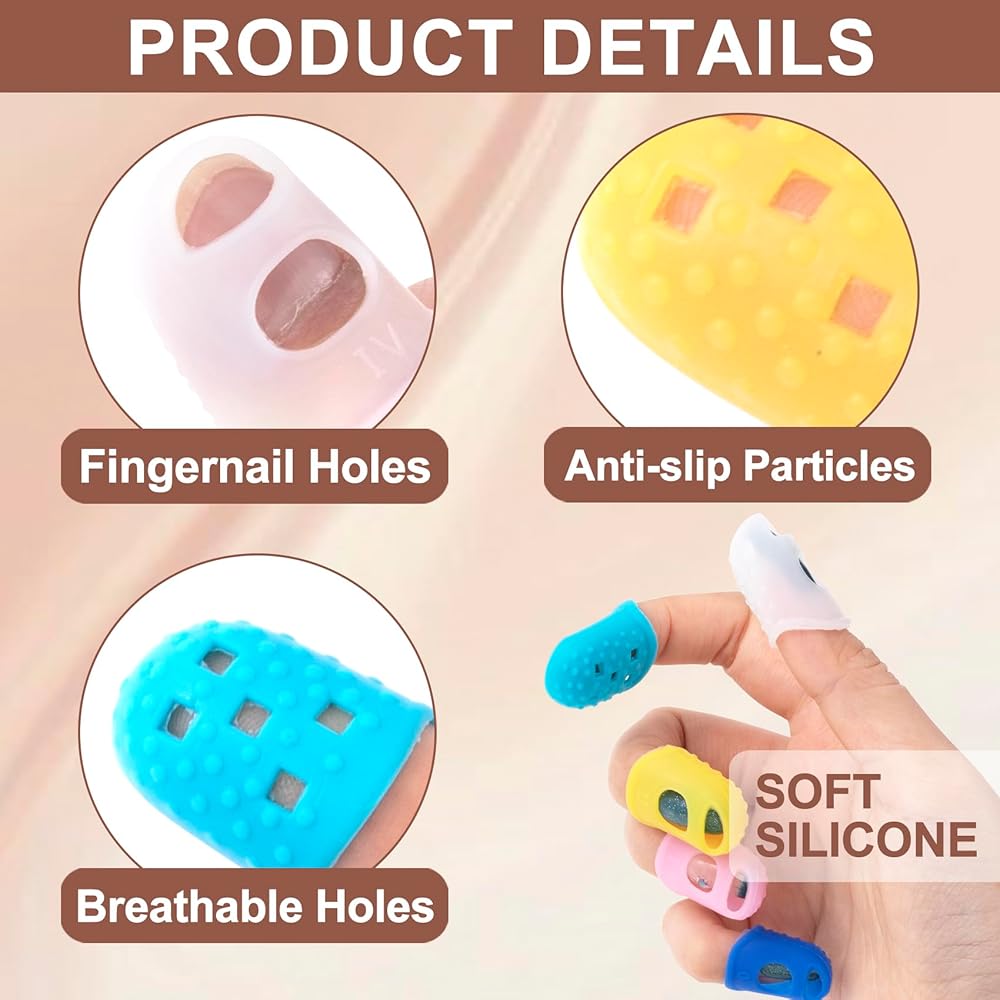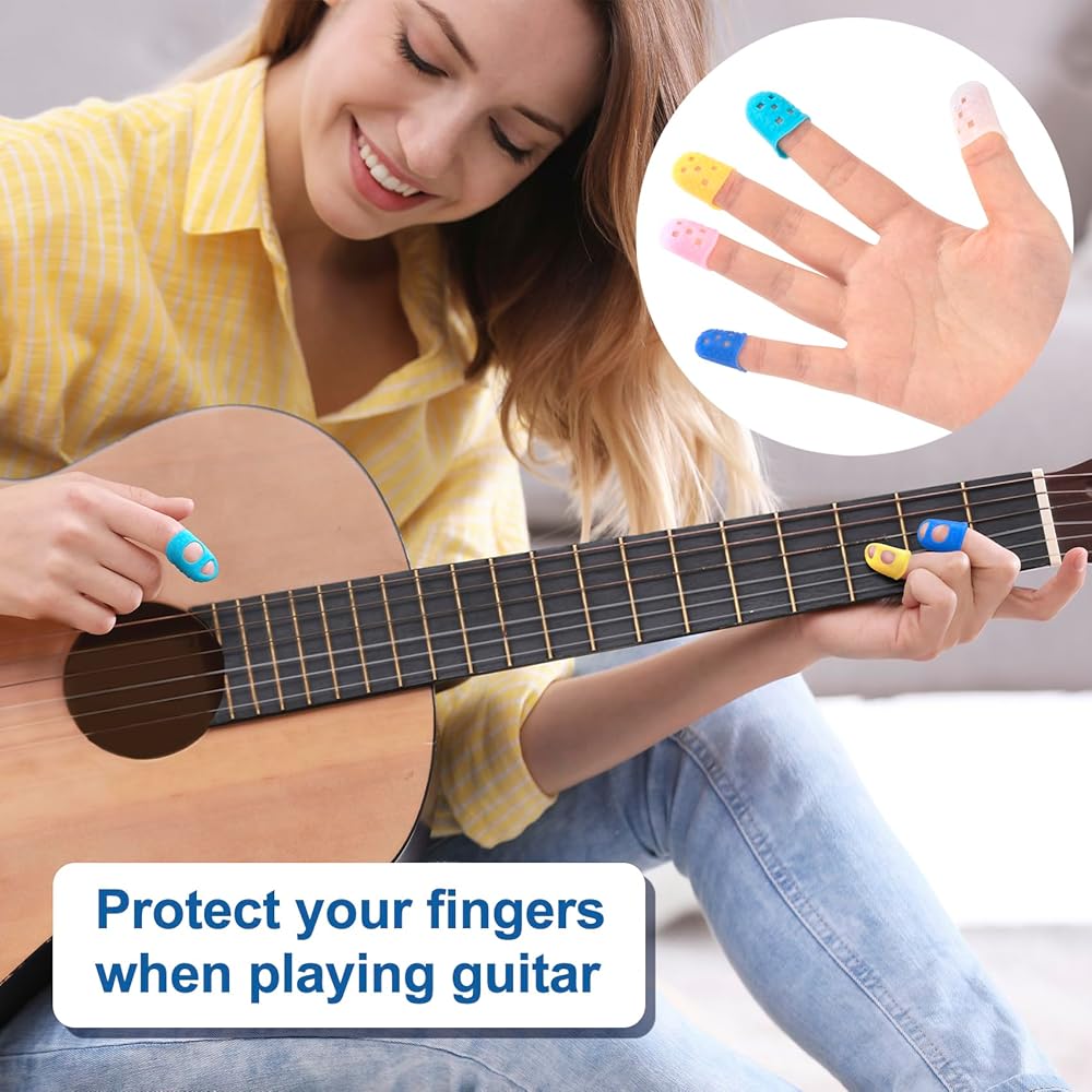 These finger tip protectors are not only suitable for playing guitar, ukulele, bass and other musical instruments, but also for sewing clothes, carving, cutting, filing, jewelry cleaning, counting banknotes, mails and paper, etc