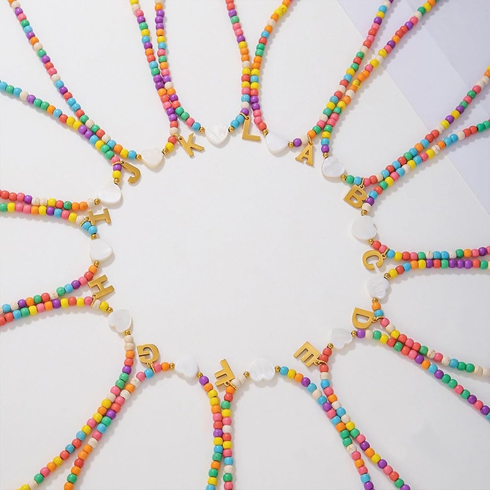 INITIAL NECKLACE:Whether you're dressing up for a special occasion or simply spicing up your everyday look, our colorful beaded initial necklaces for women are the perfect statement piece to elevate any outfit.