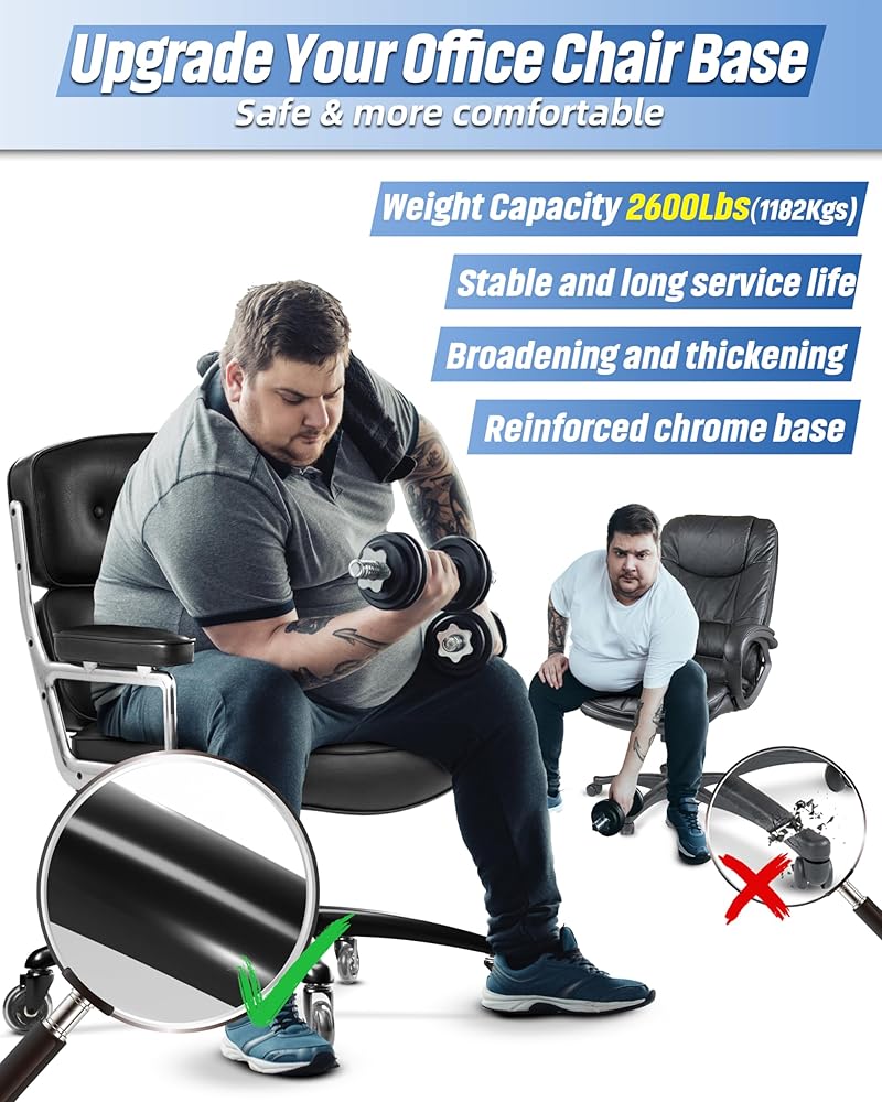 🏆【High-quality Craft Materials】Sytopia upgraded office chair base replacement features high-quality chrome construction for enhanced durability. It offers an impressive carrying capacity of 2400 lbs and has ANSI and BIFMA certification.