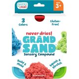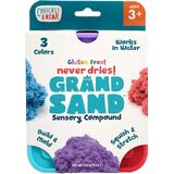 Grand Sand by Chuckle & Roar is a Sensory Compound which Never Dries! Stretch it, Mold It and Cut it. Fun to Squish. Cool to Stretch. Easy to Build. Works in Water and leaves no residue on your hands! Come with 3 fun colors (Red, Blue and Green) and is Gluten-Free!
