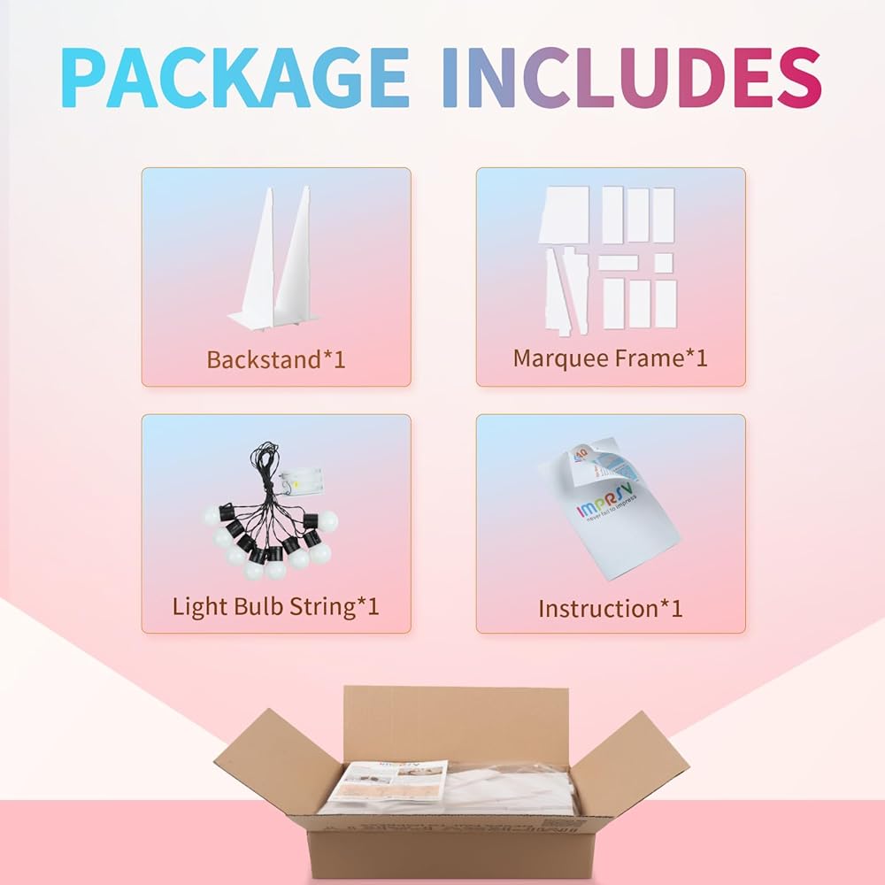 Package Includes: A set of light up letters 4 ft for party containing the pre-cut letter frames, a light bulb string and assembly instruction. It will be a good family crafts project with kids or friends to put the letters together