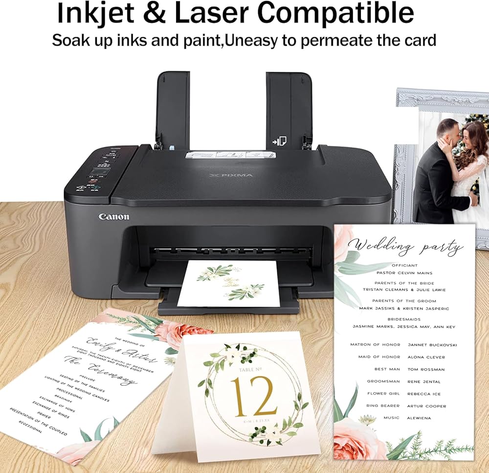 Our legal size card stock paper, measuring 8.5 x 14 inches and weighing 65lb each, is supplied in a box of 100 sheets of cream paper, ensuring precise dimensions and weight as specified in the description. These sheets of legal size card stock paper 8.5 x 14 ivory are packaged with care to prevent damage during shipment and are suitable for both professional and arts & crafts projects thanks to their premium quality. The cardstock printer paper 8.5 x 14 cream is compatible with most ink jet, laser printers, and copiers, effectively retaining ink and toner for a smooth printing process and excellent printing results. Each sheet of lightweight cardstock is textured on both sides, offering a matte but smooth appearance that presents a professional look, whether used in a commercial setting or for artistic creations. These flat cards without creases for folding, are great for direct use or DIY projects. This cardstock printer paper 8.5 x 14 can be used for home and office use, suitable for a variety of applications such as restaurant menus, reports, brochures, greeting cards, posters, DIY invitations, documents, and more.