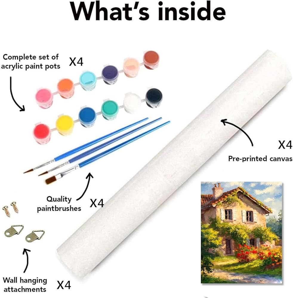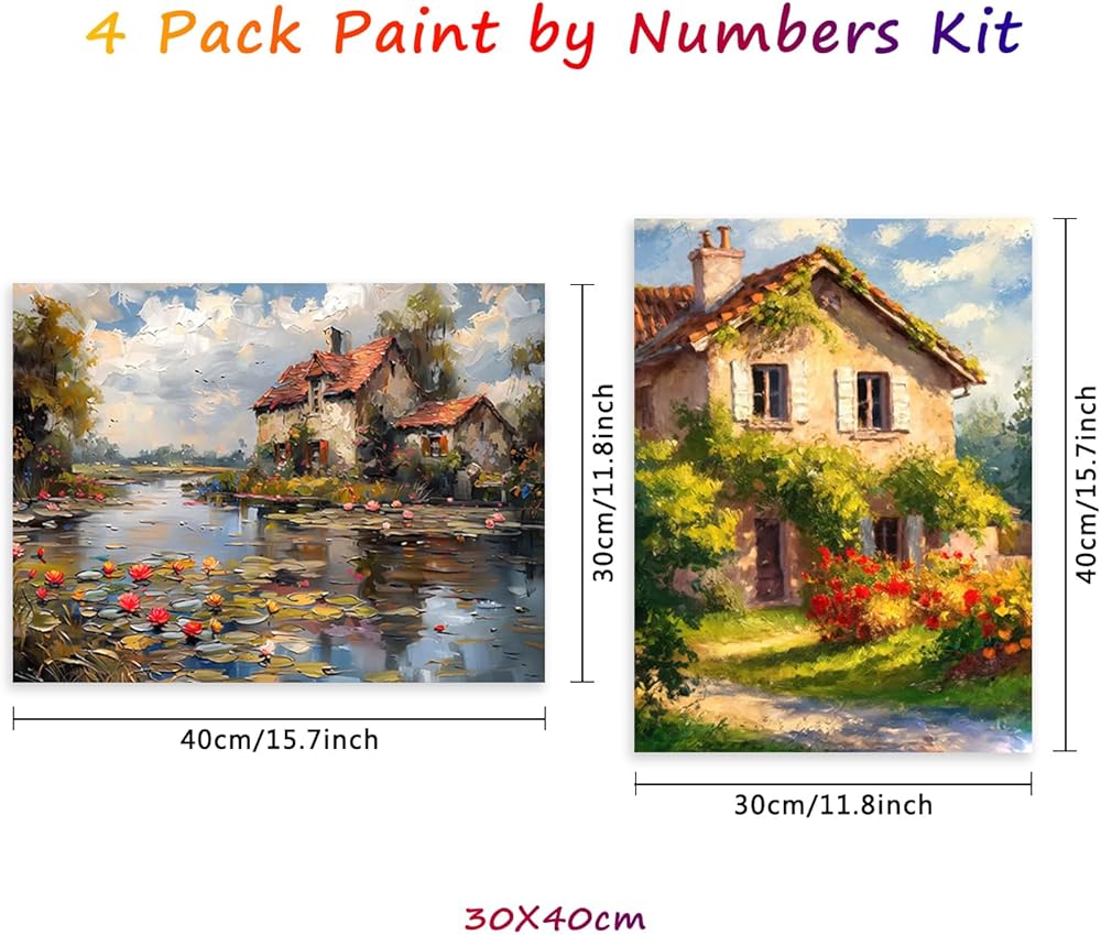 4 Pack Landscape Paint by Numbers Kit for Adults,Country Scenery Paint by Number Kits with Brushs,DIY Flowers and Plants Unframed Watercolor Painting Art Crafts for Home Wall Decor 12X16 Inch.