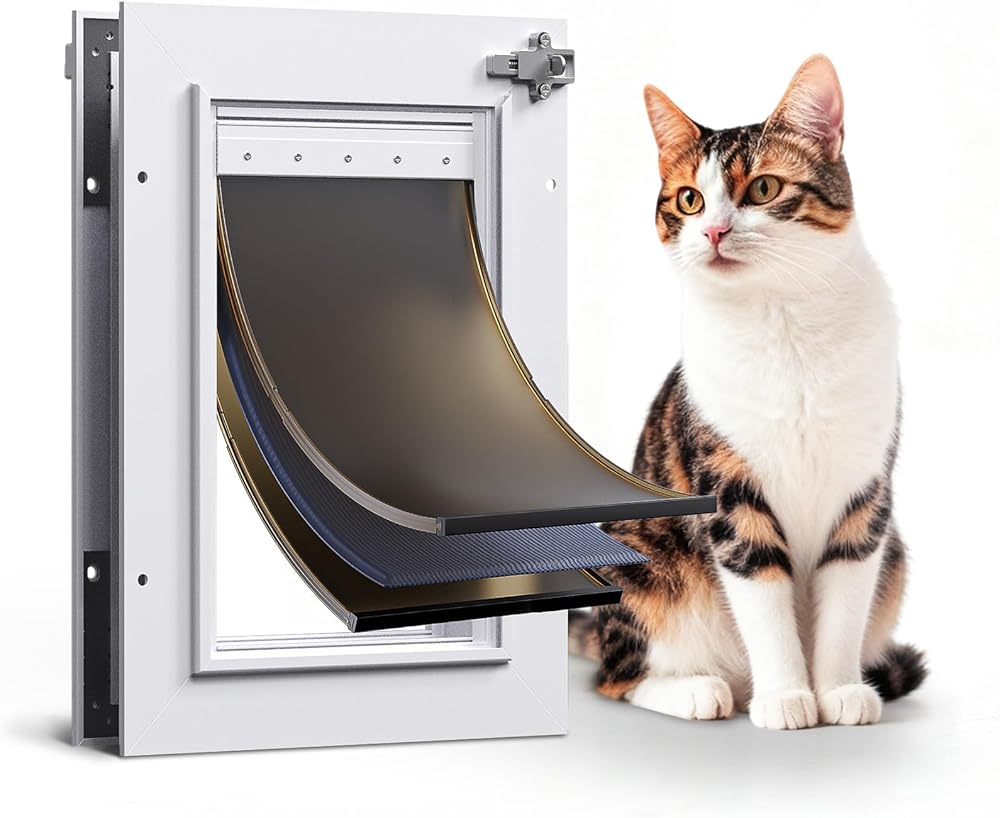 All Aluminum Cat Door Interior Door White 3 Flaps, For Exterior door Small Cat Dog Doggy Doggie Door, Heavy Duty Pet Door, Insulation Flap, Telescoping Tunnel, Sliding Closing Panel (Pets Up to 22lbs)