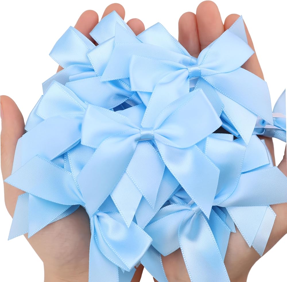 Blue Satin Ribbon Bows 50Pcs Self Adhesive Satin Bows Gift Wrapping Premade Ribbon Bows with Double-Sided Tape for Making Crafts Christmas Birthday Wedding Decorations