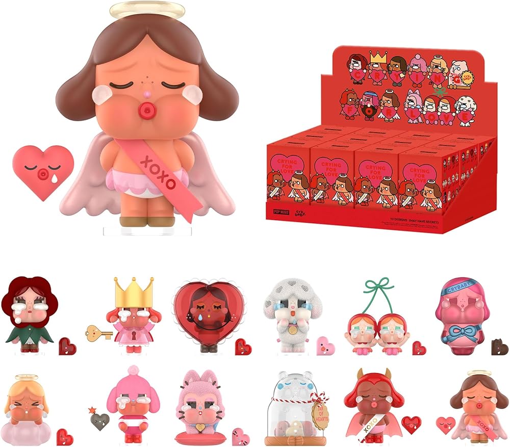 POP MART CRYBABY Crying For Love Series Figures: The blind box contains a random figure from a specific series. Each blind box only contains one figure. No one, including us, knows what's inside. This collection contains 12 blind box figures, one of them might be the secret edition.
