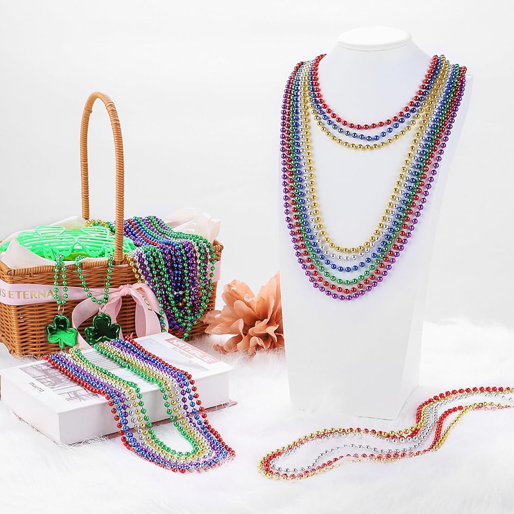 Multiple Uses: The three color combinations of Mardi Gras beaded necklaces can be worn at parades and parties, or used for tossing to bring a festive atmosphere to the holiday. You can also use beaded necklaces for other events, and individually color-coordinating them can make you the center of attention in a crowd.