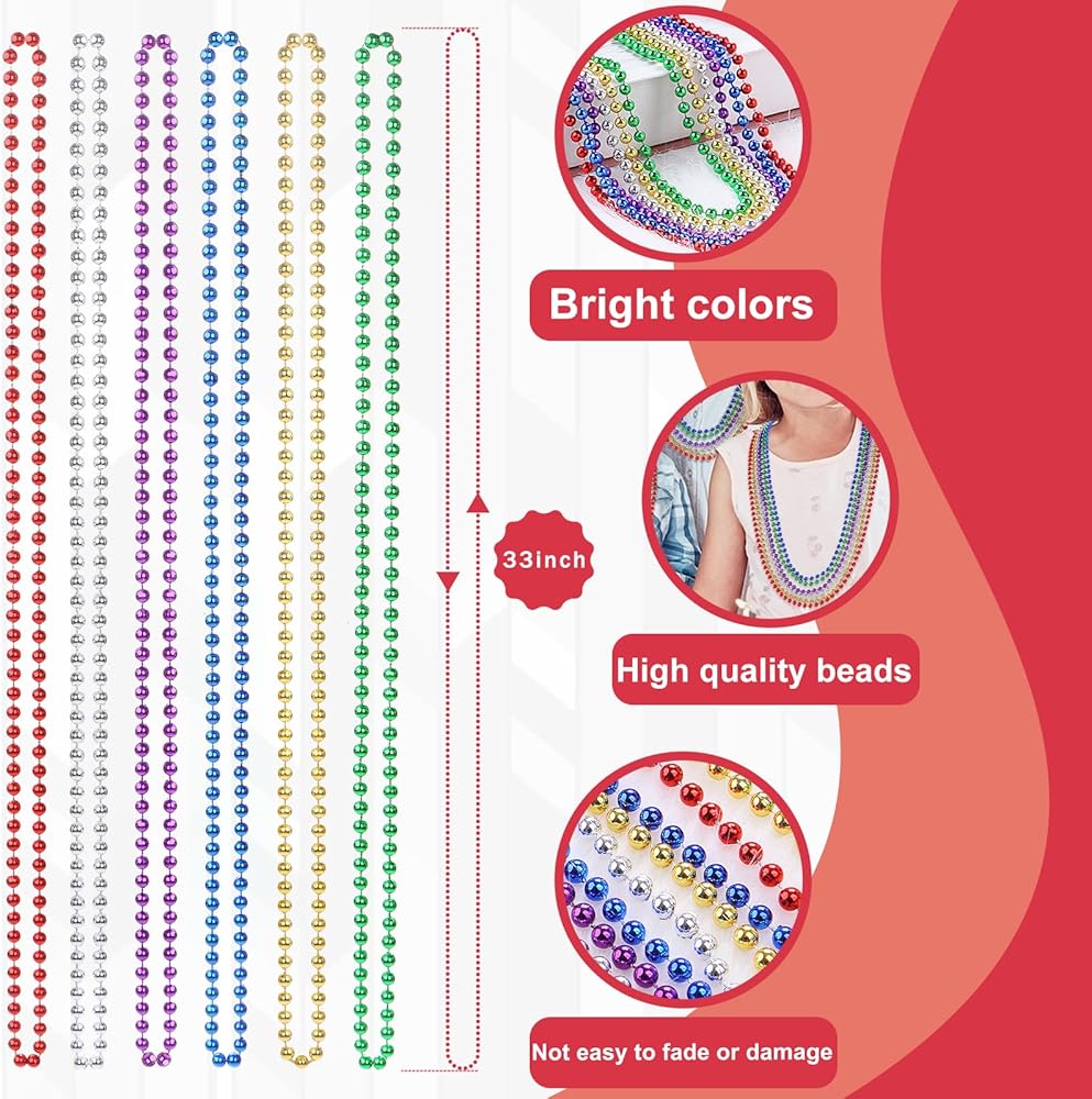 Beautiful Design: Sparkling and shiny beaded necklace can be mixed and matched in three colors. Highly saturated color mixing helps you to be the center of attention in holiday celebrations and make festivals and parties more atmospheric.