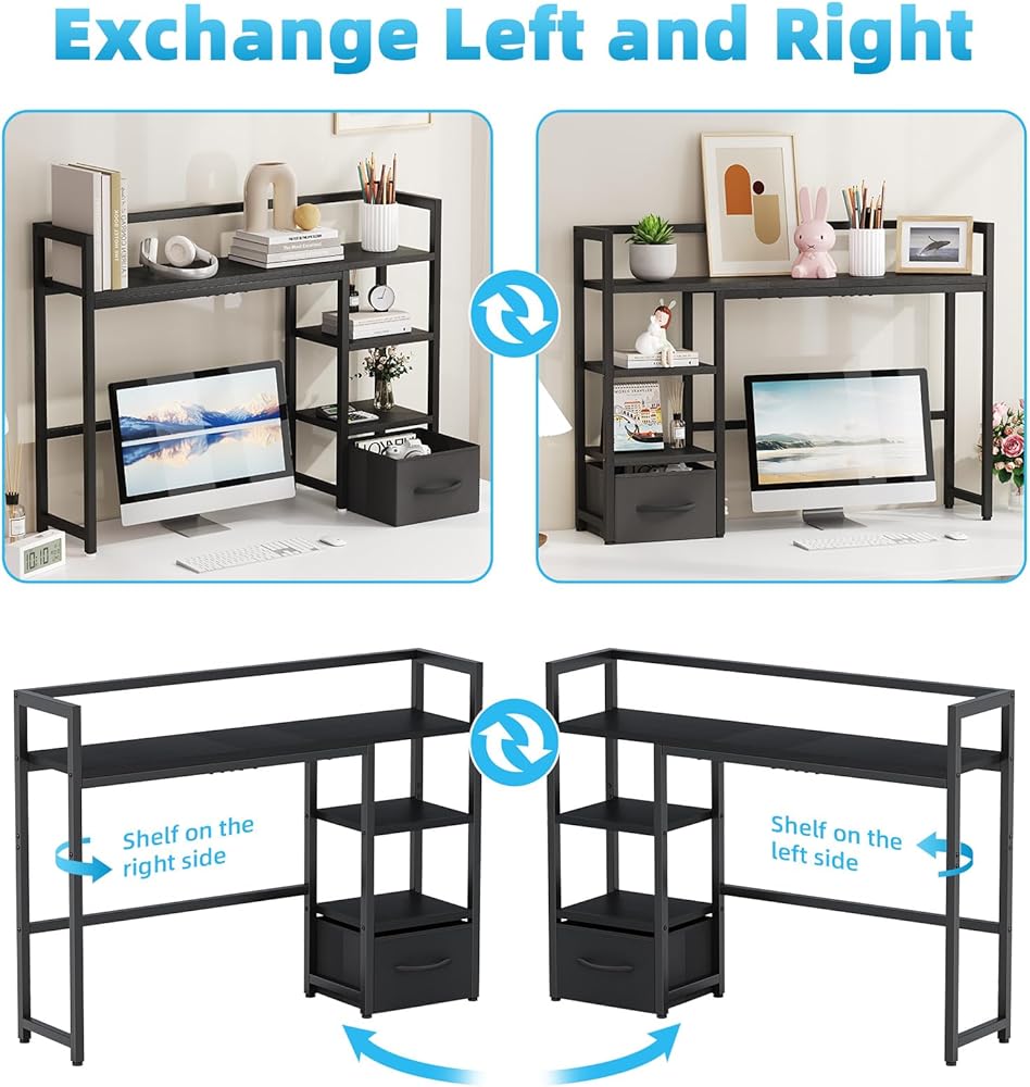 【A Powerful Desk Hutch】 This desktop bookshelf features a 4 tier shelf design that maximizes vertical space to provide ample storage space. It features 3 compartments for easy categorization and organization of your items, and also comes with additional fabric drawers at the bottom for storing smaller or personal items, so you can keep your items neatly organized and within reach