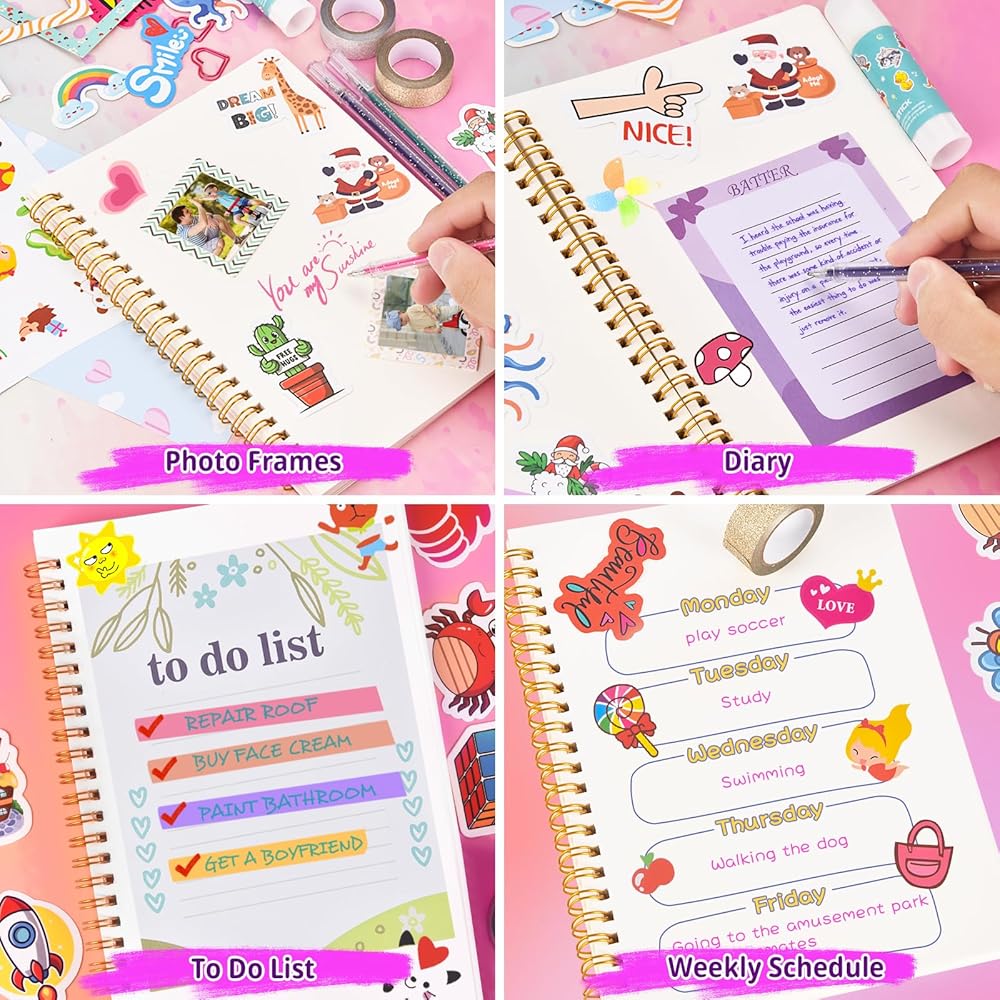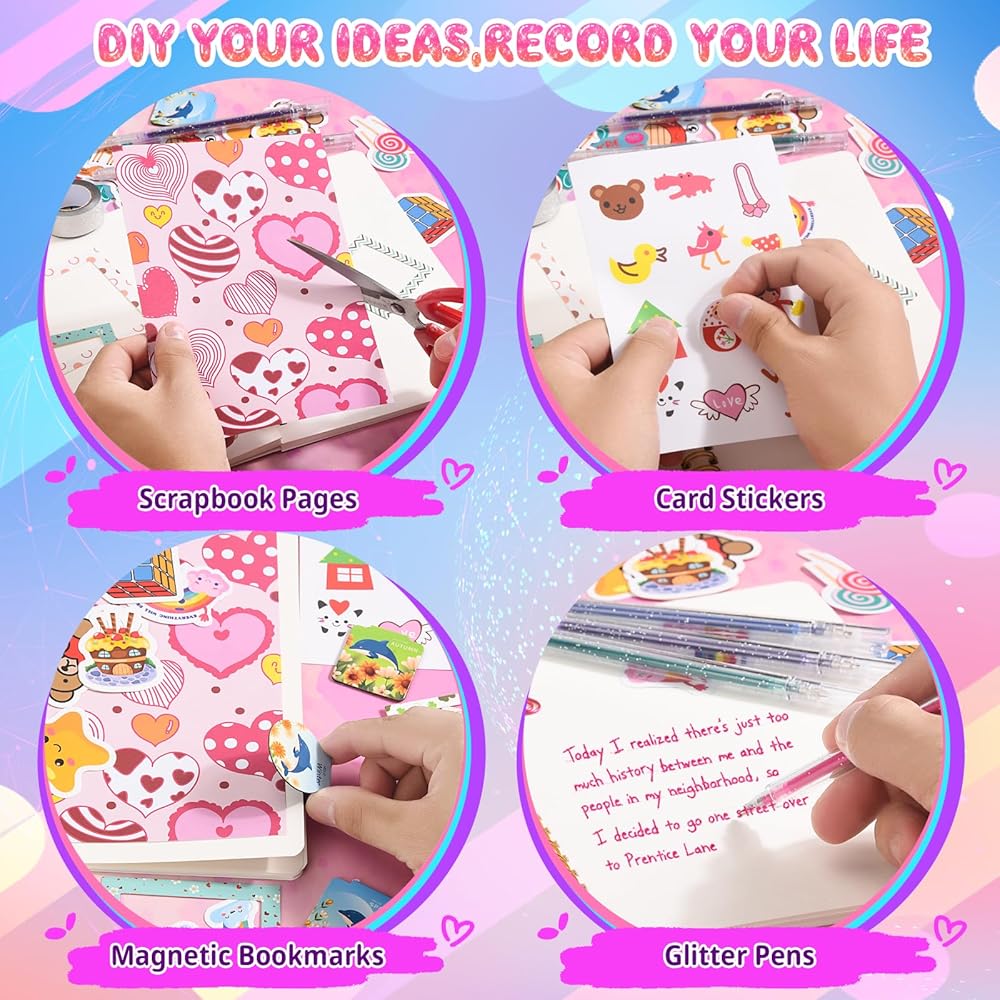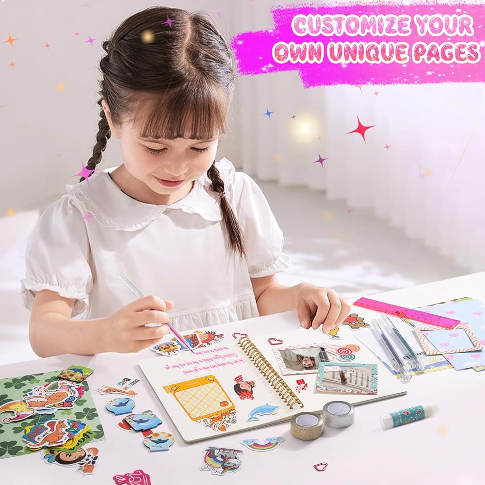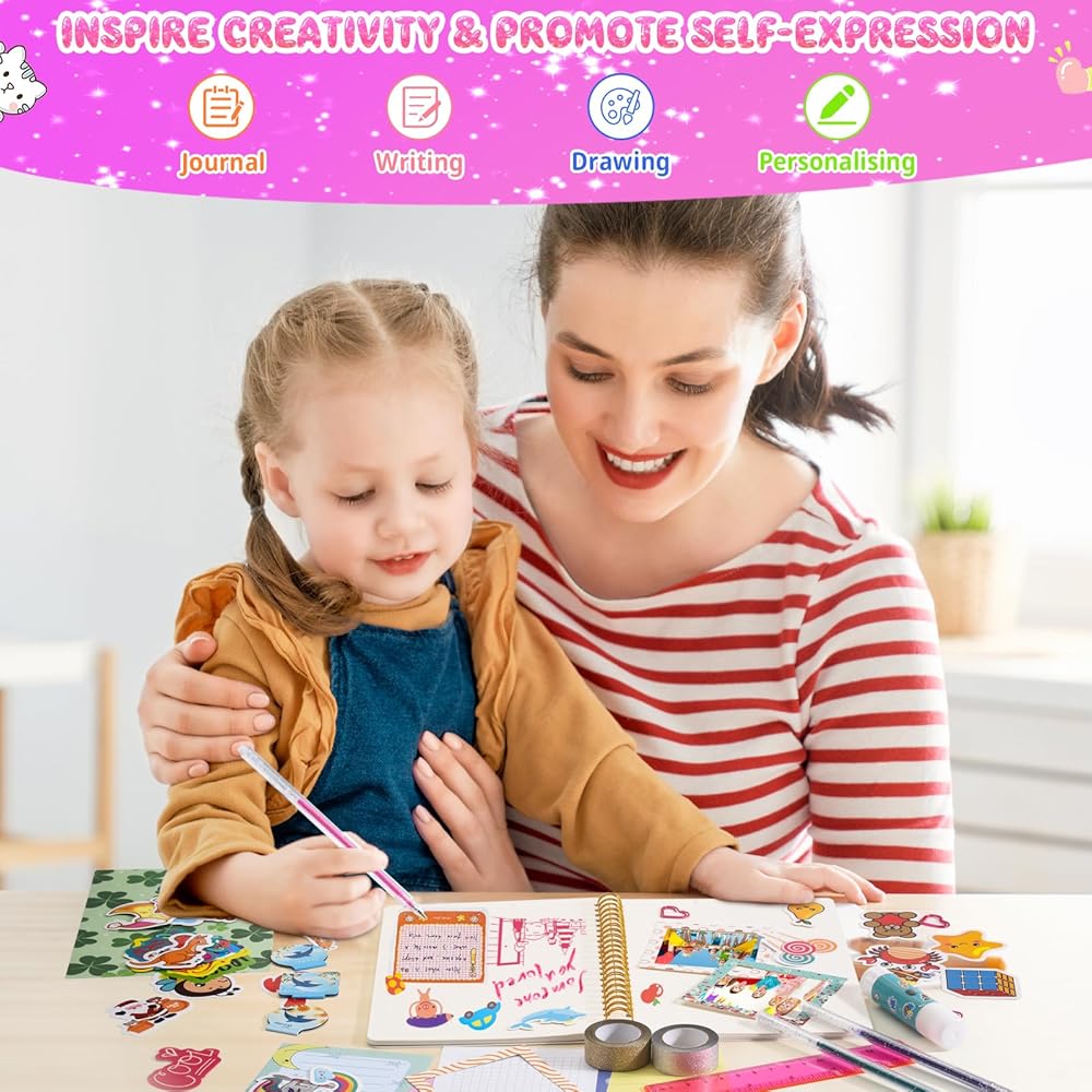 【Design Your Own Unique Diary】The kit includes a specially designed journal, complete with blank pages, ready to be filled with thoughts, dreams, and memories. Your girl can personalize her diary, document her daily experiences, set goals, and express her emotions. Decorate all 120 pages with cute stickers, colorful pens, sparkling glitter tapes, and your creativity.