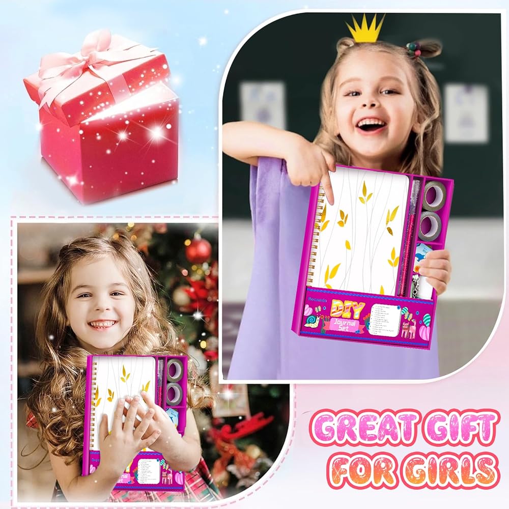DIY Journal Kit for Girls, DIY Journal Set Birthday Gifts for Teen Girls Ages 8 9 10 11 12 13 14 Year Old, Stationery Set Journaling Art Crafts Kit, Scrapbook & Diary Supplies