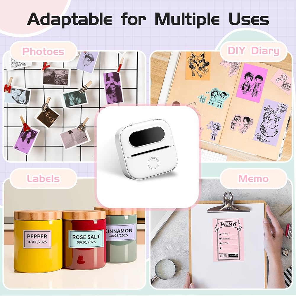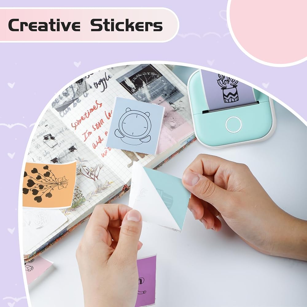 Multi-functional thermal sticker roll: You can creatively print content. The Ponek T02 sticky roll stickers are suitable for DIY crafting, photo printing, text, shopping lists, study notes, memos, and anything else you want to print