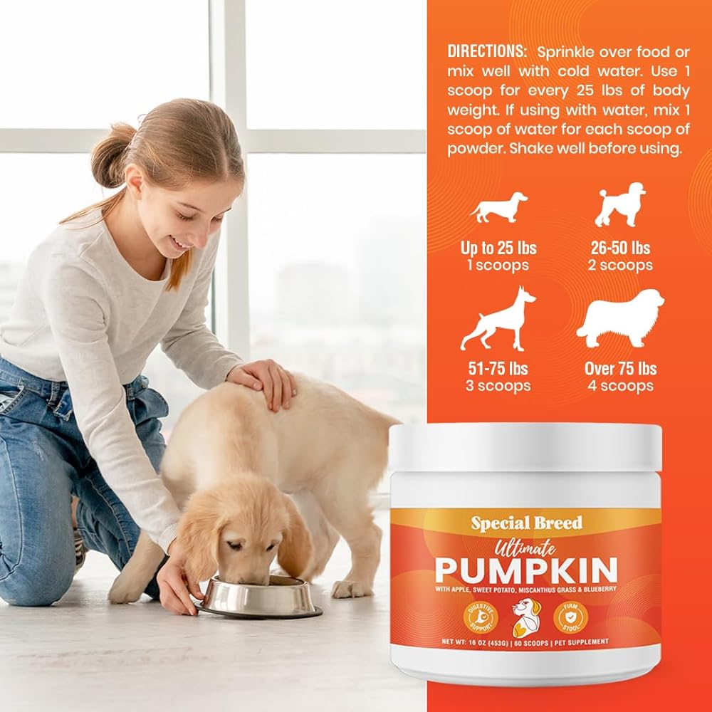 Tasty Dog Food Topper: Easy to sprinkle on dog food or mix with water for a tasty pumpkin purree that dogs love.