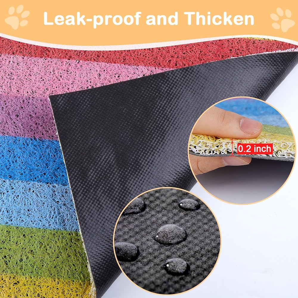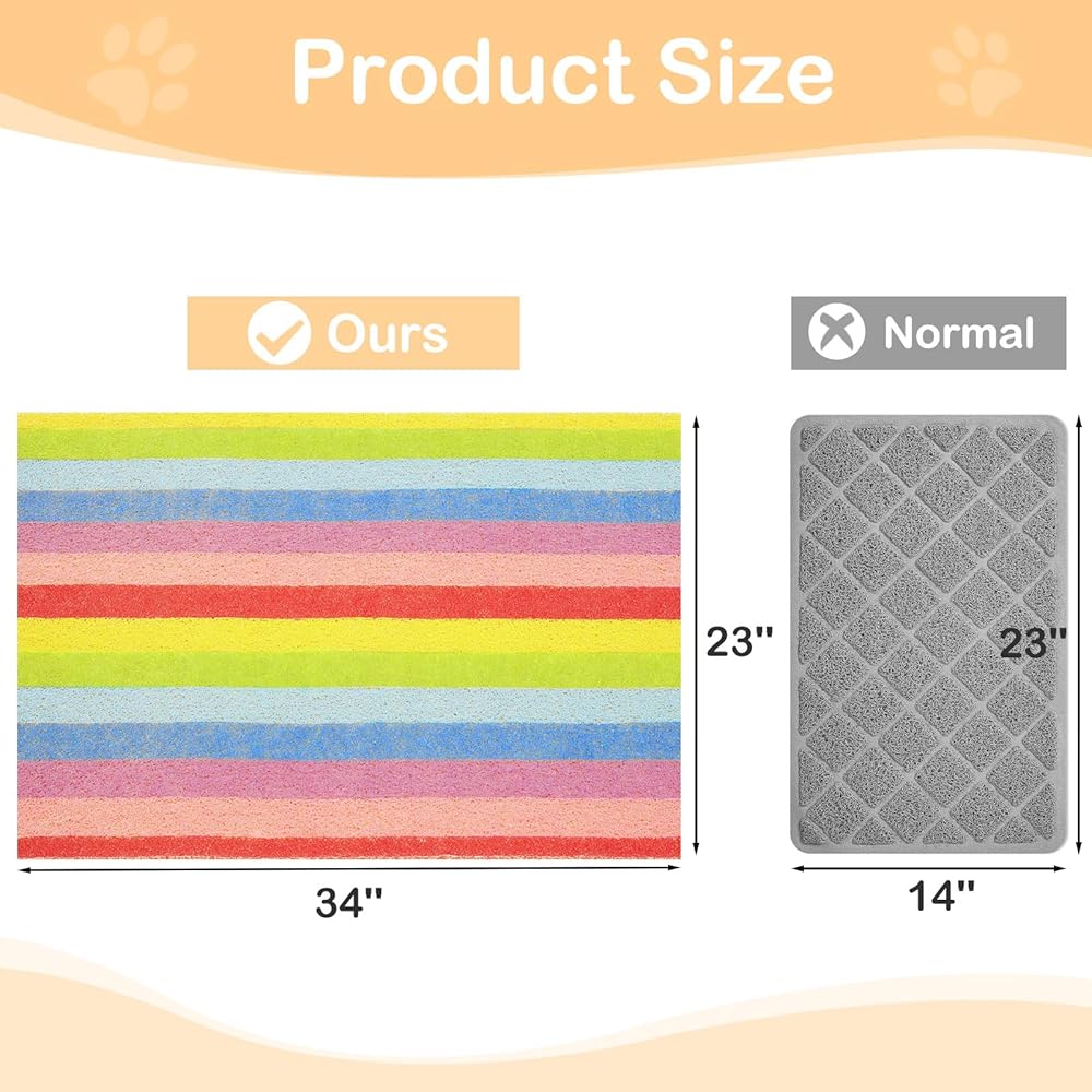 Larger & Softer: The length of this litter mat is 33.5 inches and the width is 22.4 inches. The range is large enough to not only catch the fallen cat litter well, but also provide a good place for cats to rest and play; It's very suitable for your cat and creates comfort and cushioning for your cat's sensitive pawsand