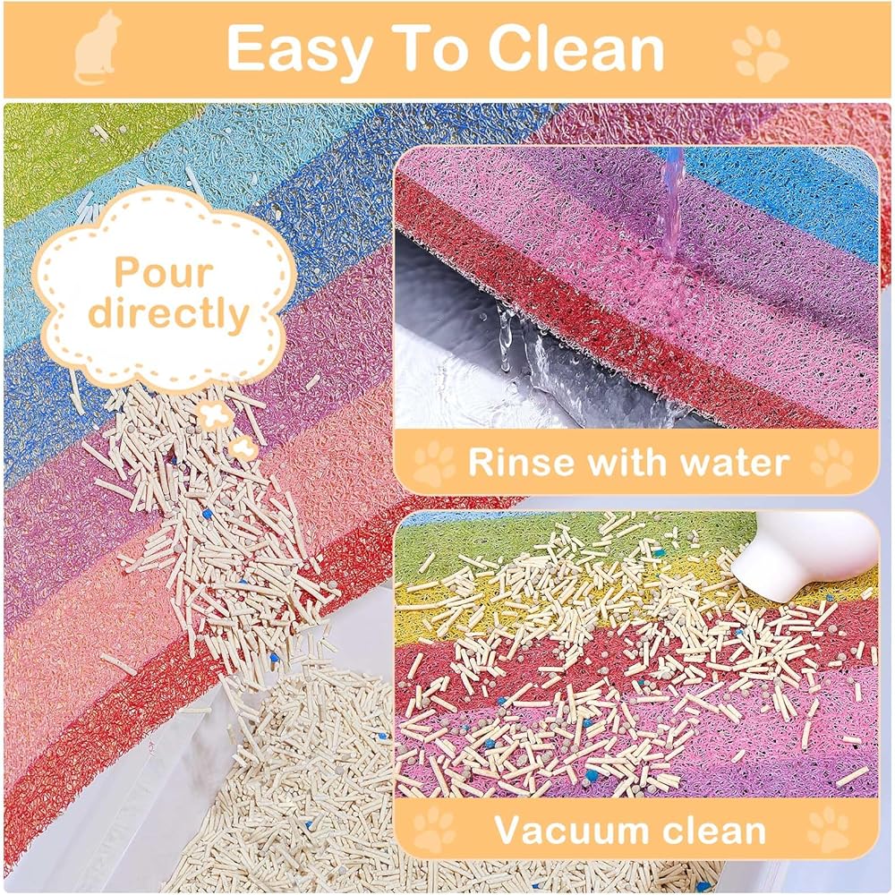 Easy to Clean: Just pick up the cat litter trap mat and shaking it, the litter will fall off. It can also be vacuumed or rinsed with water. If you want a deep cleaning, you can wash it in warm water with a soap box, and your mat will be like new after drying
