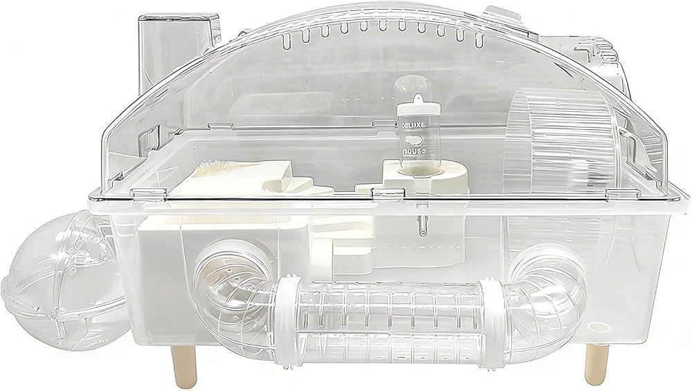 【Transparent Field of View】 The hamster cage features a top made of acrylic material, allowing you to easily observe your furry friend as they eat, play, rest, and grow. The convenient top door of this dwarf hamster cage enables interaction and bonding moments with your hamster.