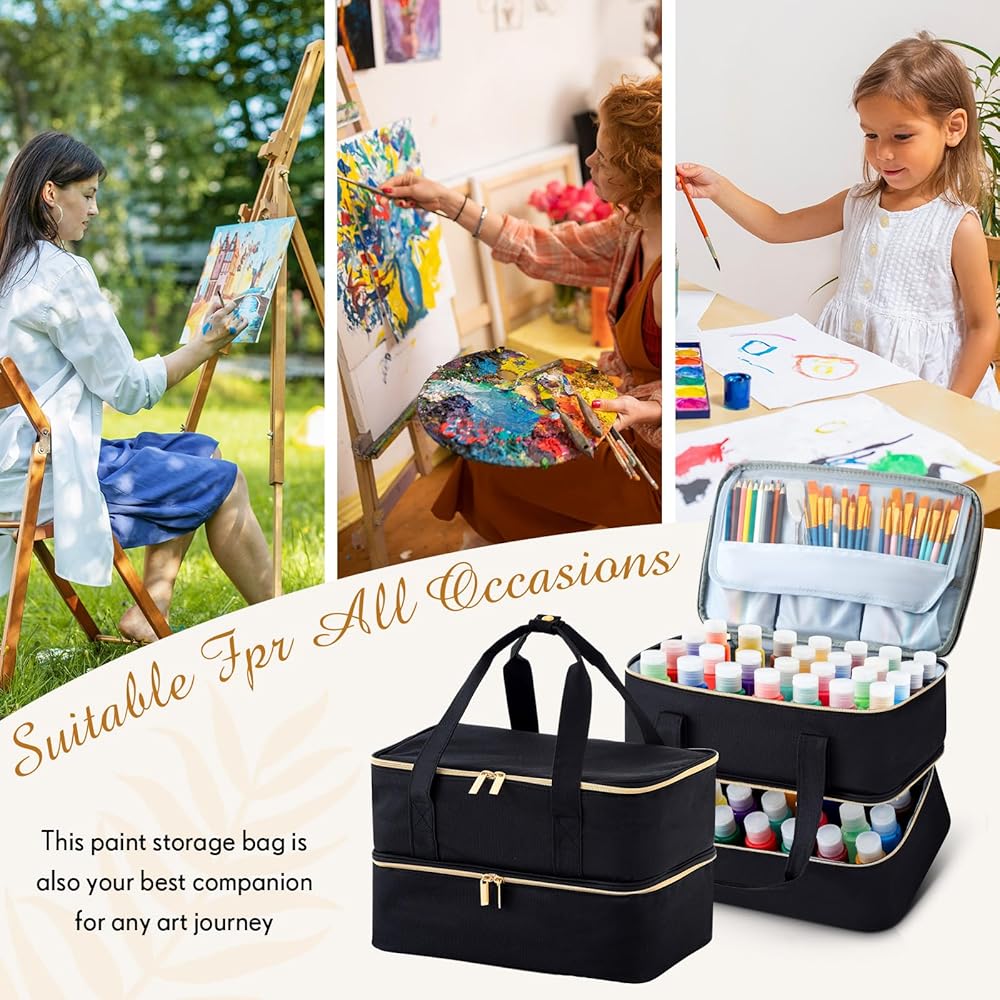 Exquisite Box: heavy duty art carrying kit, perfect for busy artists; Ideal gift for artists and students for outdoor sketching, studios, professional exams, etc.this paint storage bag is also your best companion for any art journey; It ensures your acrylic paint and inks are well organized and travel ready