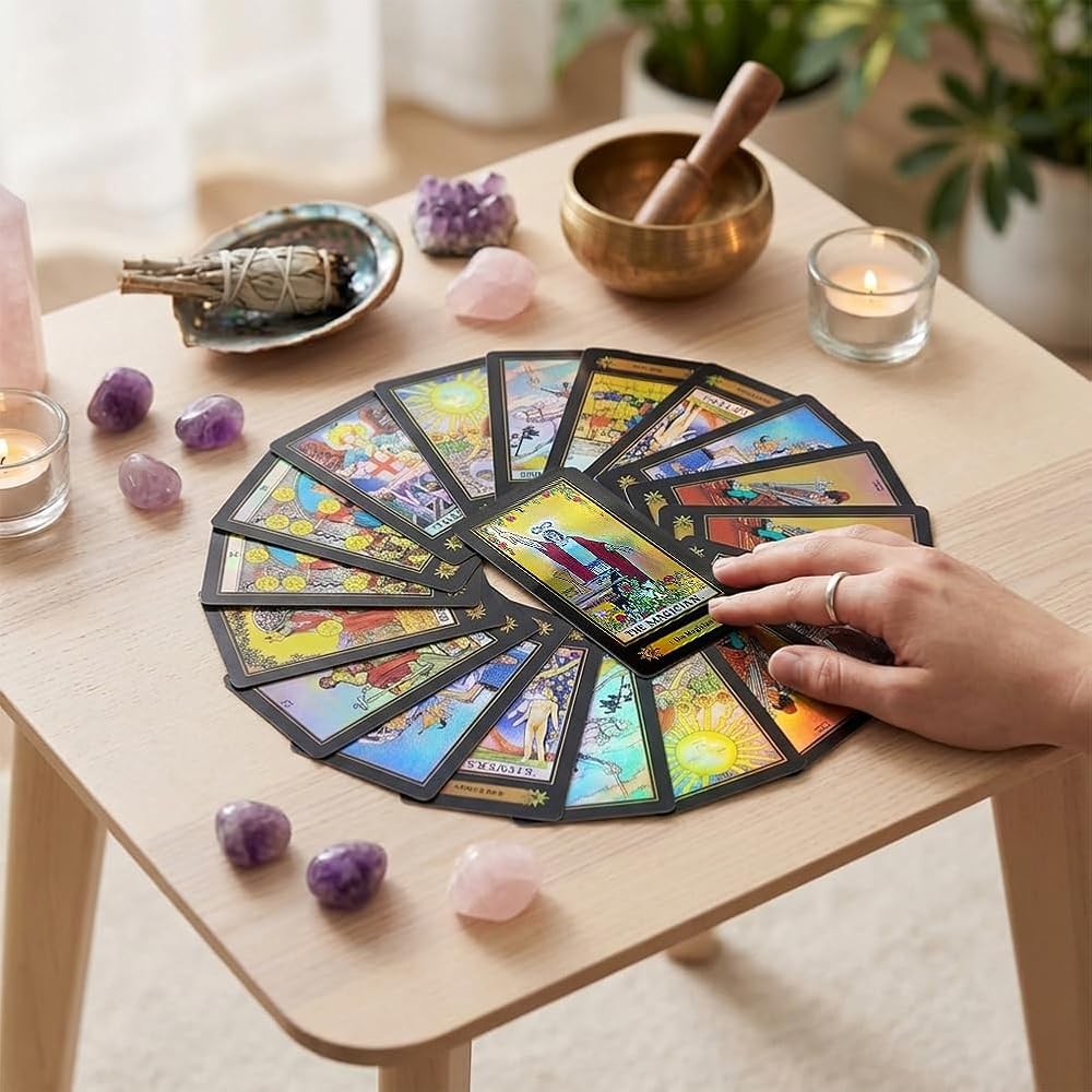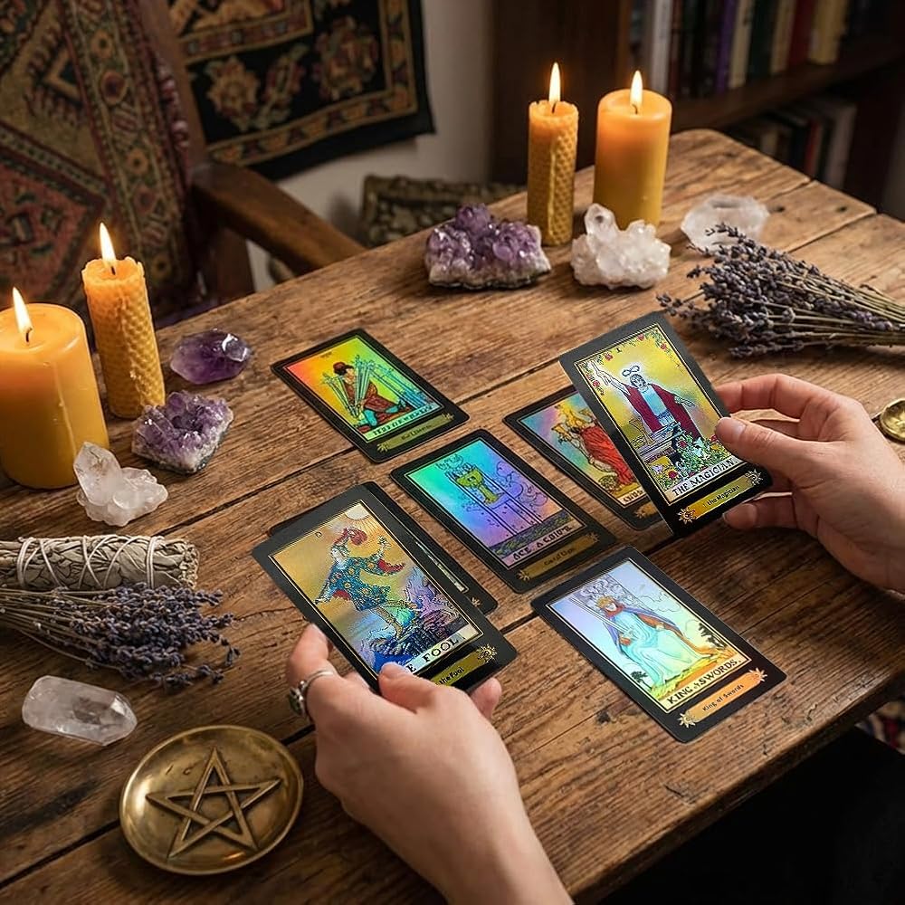 【Exquisite Packaging】The Holographic Tarot Cards come with a guided book and make for a great gift for friends who are beginners in playing Tarot cards and fortune-telling games.