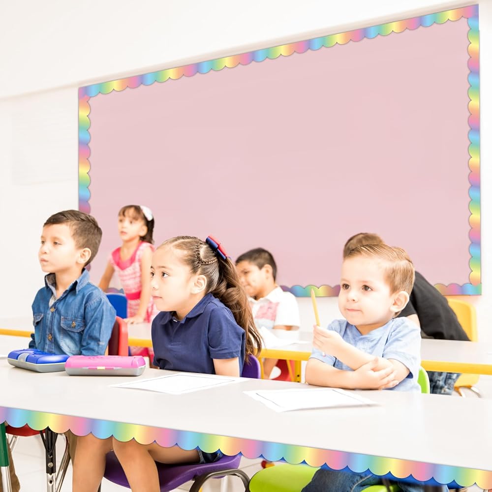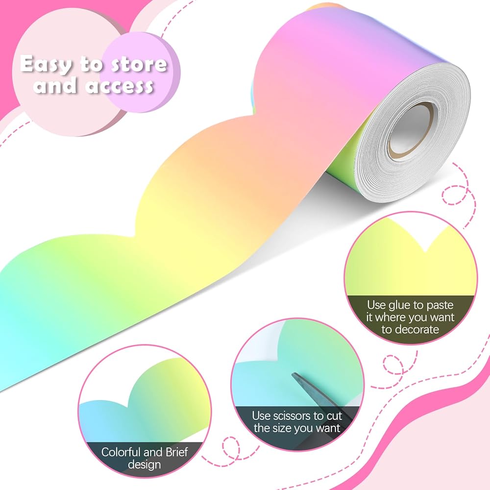 Mixweer Watercolor Rainbow Pastel Scalloped Bulletin Board Border 65.6 Feet Classroom Borders Poster Chalkboard Border for School, Classroom, Home Decoration(Watercolor,Rainbow)