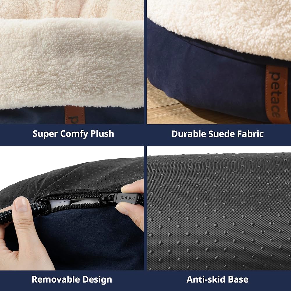 SOFT & COZY: Durable suede fabric coupled with plush and soft polyfill walls, provides unparalleled comfort and security for pets. Oval shape is perfect for pets who like to curl up with lots of cushion