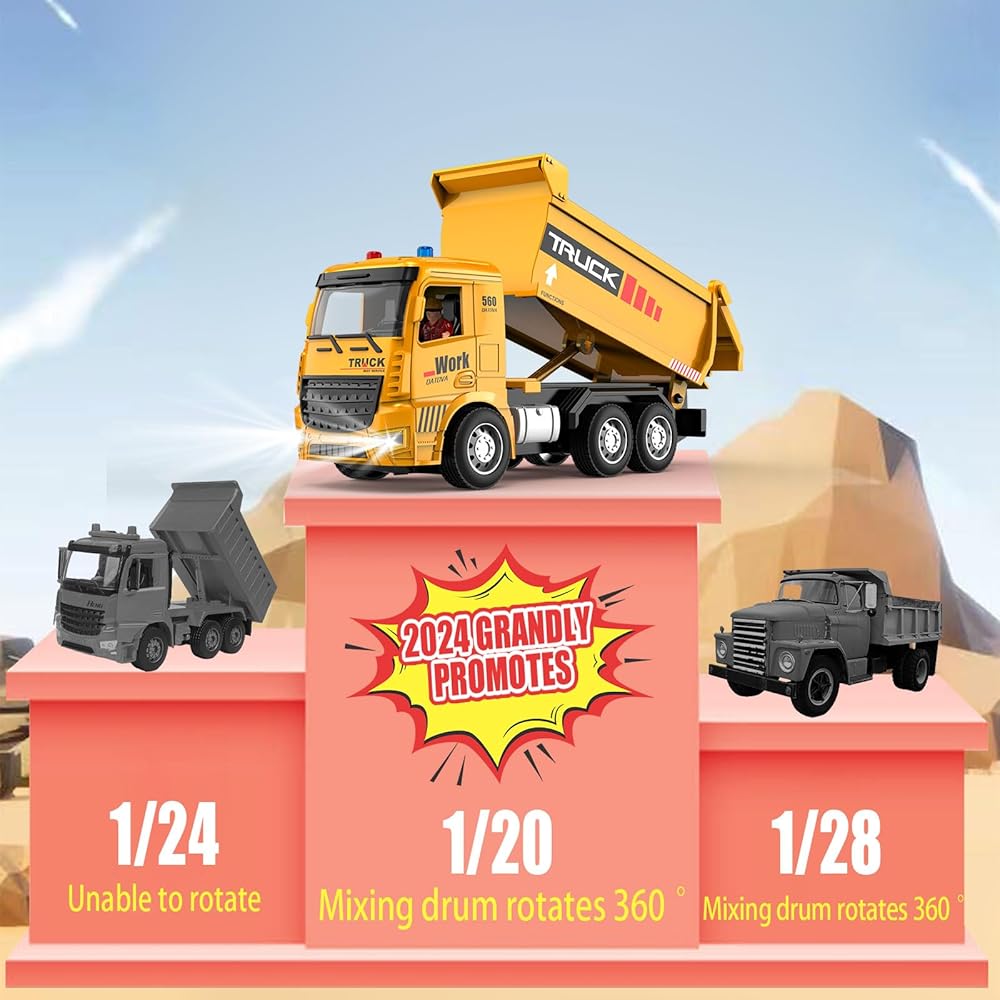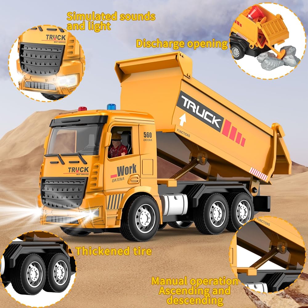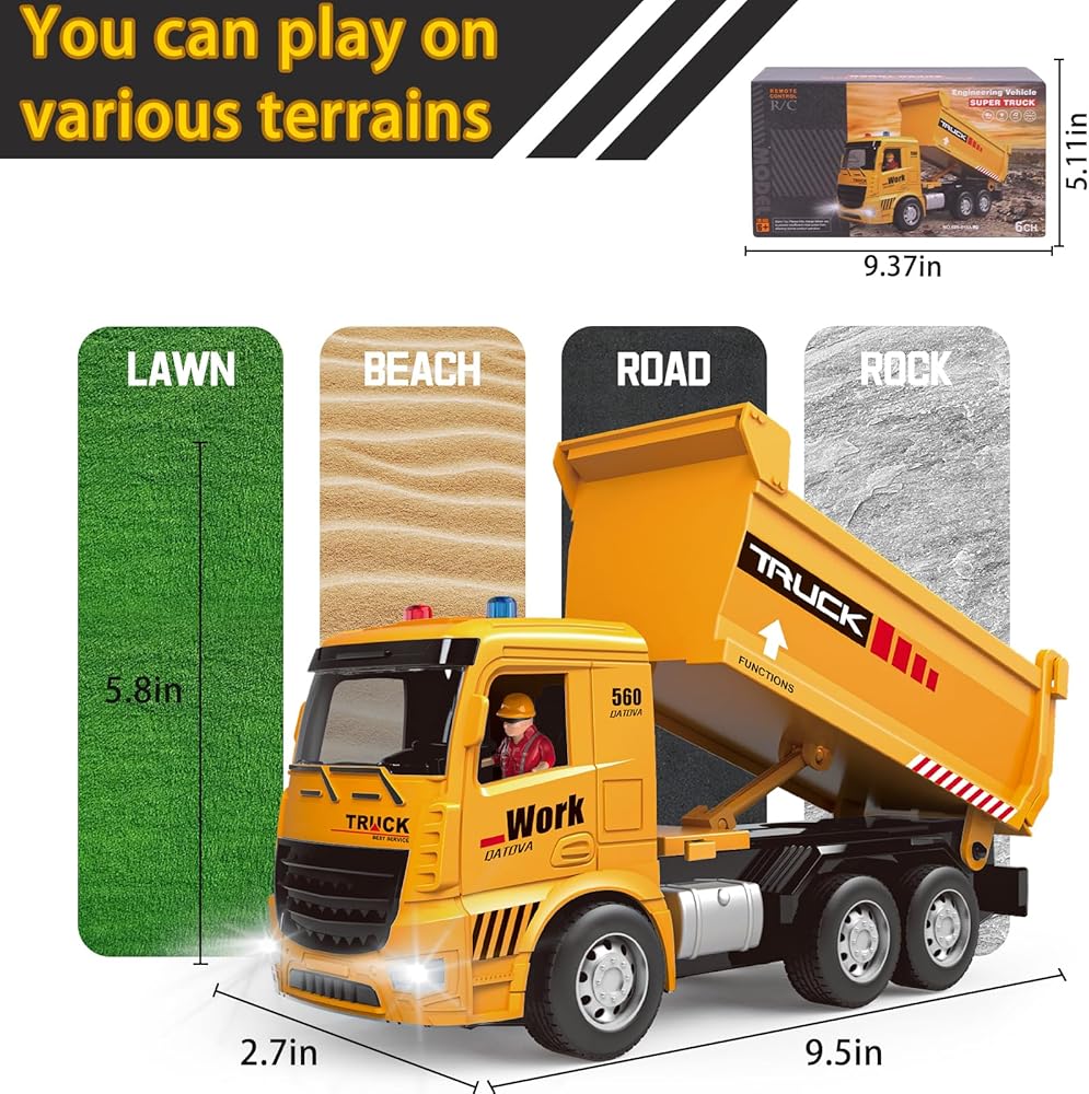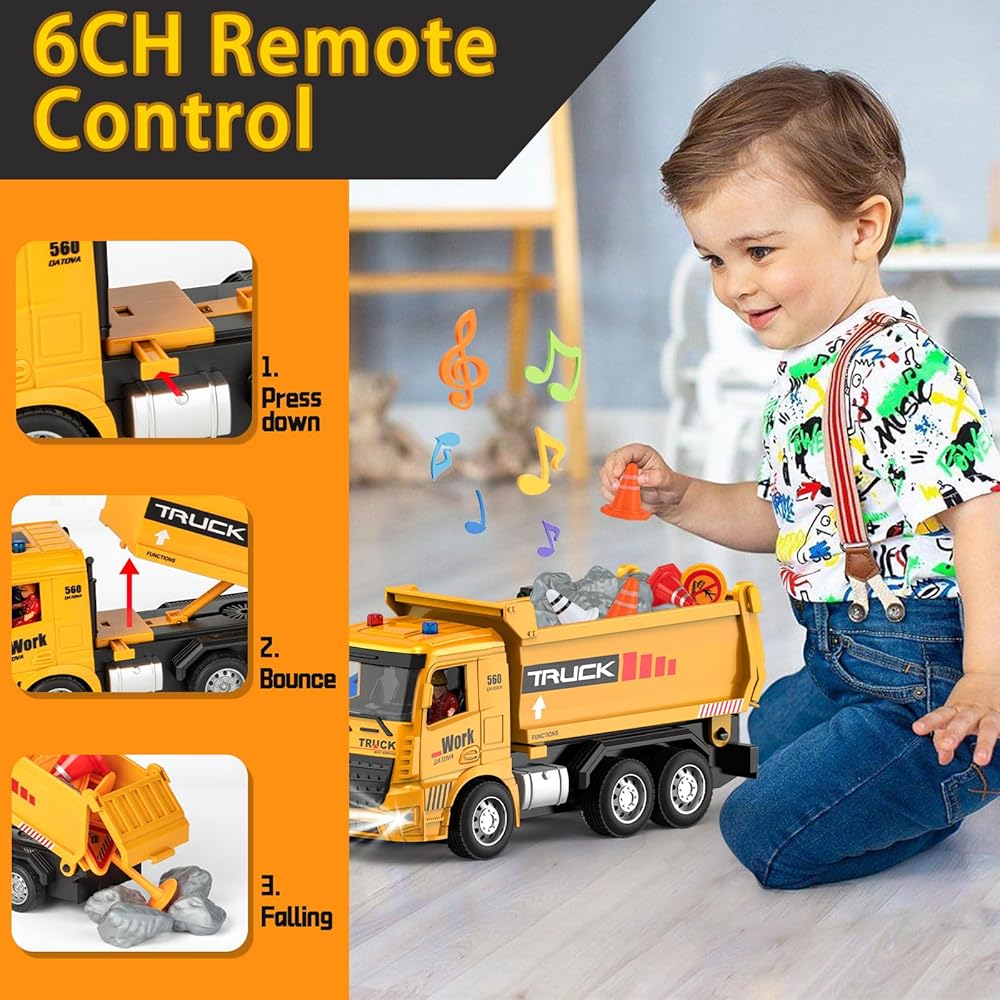 11-Channel Dump Truck Toy :This remote control dump truck! Explore 11 channels of control, showcasing this kid construction toy dump truck's capabilities with the one-key demonstration function. Sound, lighting, operation of various functions, experience the world of construction like never before with our rc car toy dump truck ensuring hours of entertainment.