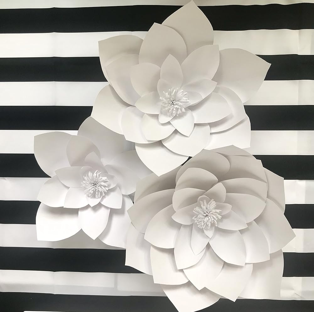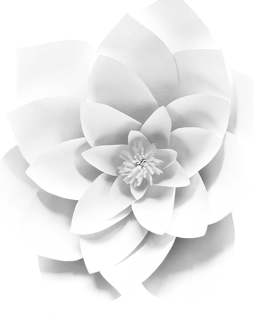 You will receive a hard copy template to make the paper flower of choice as well as step-by-step instructions. You can make all size flowers XL-XS and as many as you want! Use over and over again for all kinds of projects: Photoshoots, Backdrops, Home Wall Decor, Newborn Photography, the options are endless! You can also use colored paper and/or spray paint them! Not included is the paper you need to create your own flowers, as well as a pencil, scissors and glue gun!