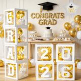 Graduation Decorations Class of 2026 - Black and Gold Graduation Decorations - Balloons Boxes with Letters 2026 GRAD So Proud of You, Congrats Grad Party Decorations for Any Grades
