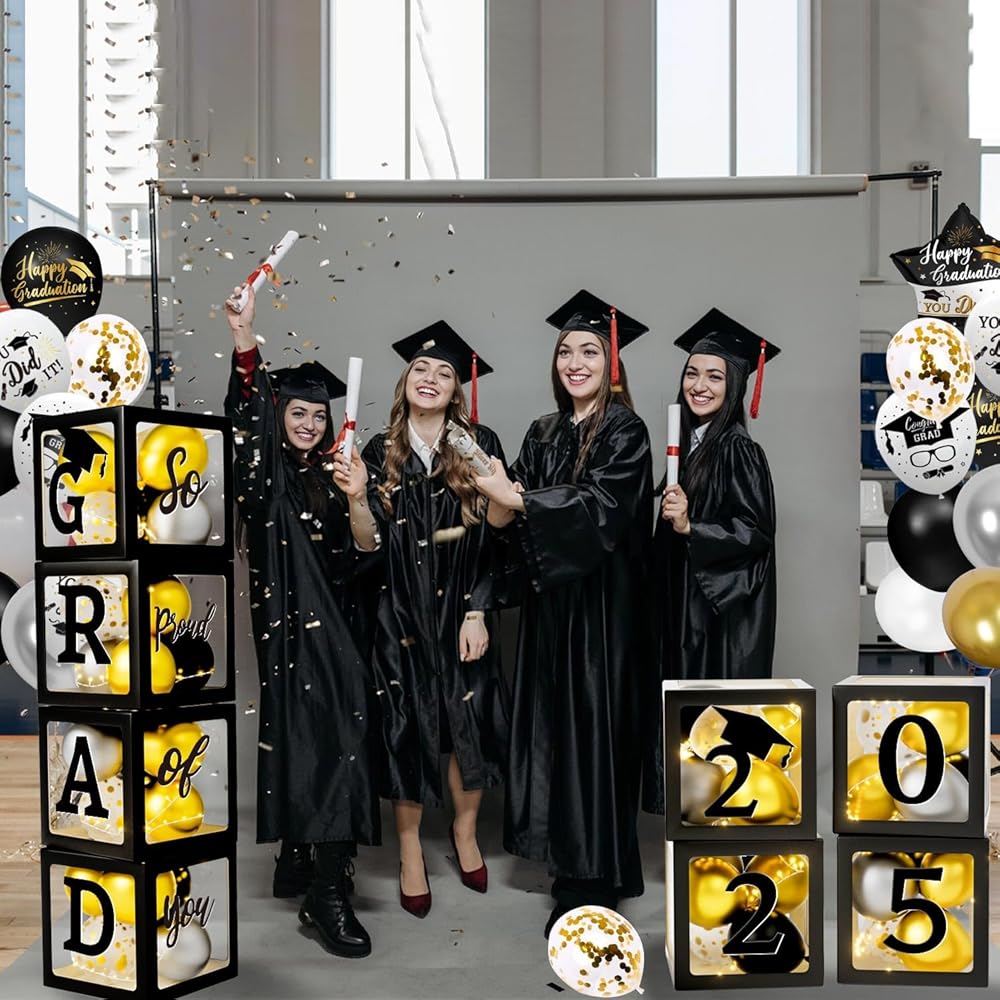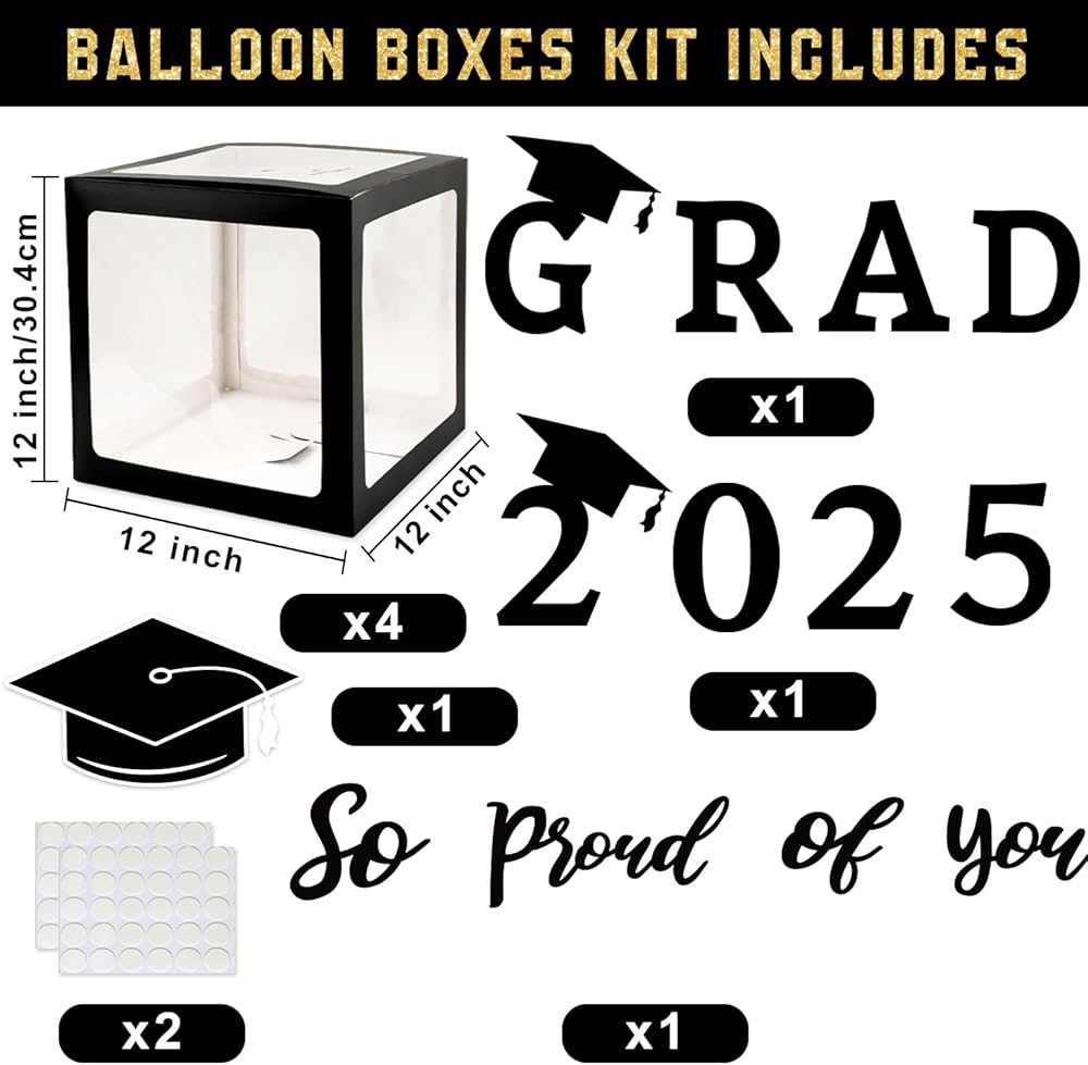 Versatile Celebration Vignettes: Our 2025 graduation decorations set the stage for a celebration to remember. Whether you're celebrating a class event or an individual milestone, this decorative box paired with graduation-themed balloons adds vibrant color and life to your party. Designed to capture the spirit of the occasion, it's the perfect finishing touch for any graduation event, ensuring your space looks as celebratory and memorable as the moment itself