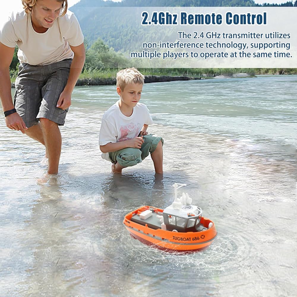 [Beginner-Friendly]—The remote control adopts advanced 2.4G technology, and multiple RC boats will not interfere with each other when playing at the same time. The pistol-style remote controller is easy to operate, allowing you to effortlessly control forward, left, right, and reverse movements.