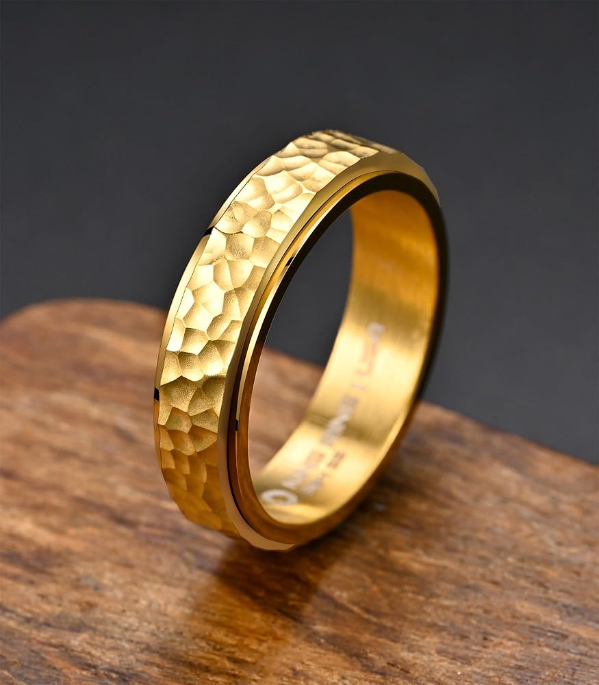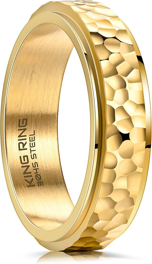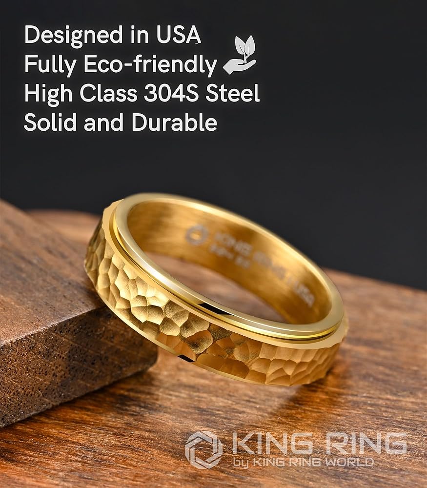 Looking for a stress helper? Stress relief gifts for women & for men? Or do you want to attract attention with a really quality lambent fashion rings for women? Try our King Ring K39 Hammered Spinner Ring now. We mill each product from a single piece of solid 304S steel before carefully shaping & polishing to a stunning, mirror shine, producing an exquisitely finished spinning ring that's completely scratch, chip & tarnish resistant & will retain it's stunning shine day in, day out!