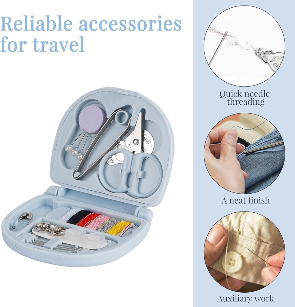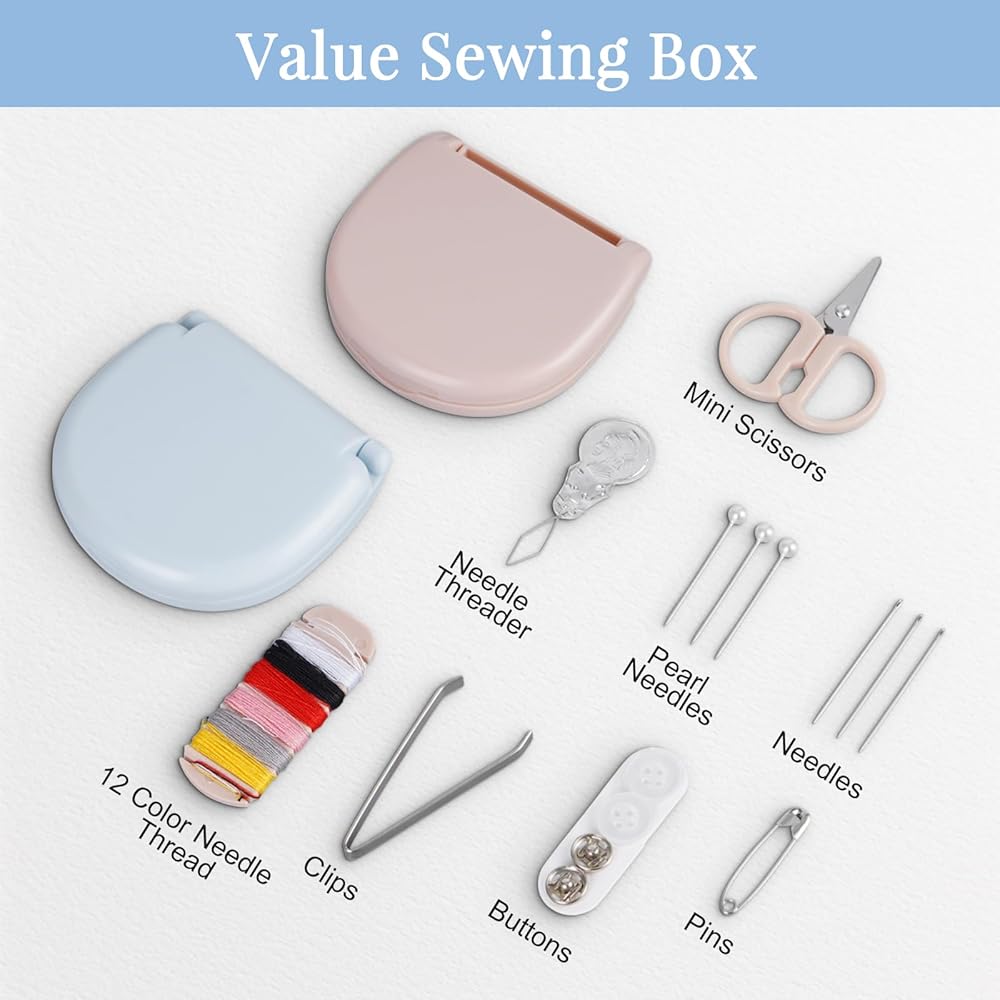 • Comprehensive for Every Need: You'll receive 10 portable sewing kits in soothing light pink ,blue and black colors. Each kit includes a complete set of tools necessary for basic repairs: needles, threads, scissors, buttons, a threader, pins, and more. All tools are securely organized for easy access and hassle-free storage, ensuring you have everything you need, whenever you need it