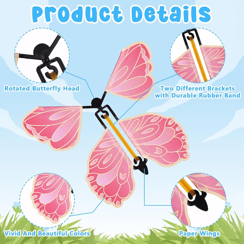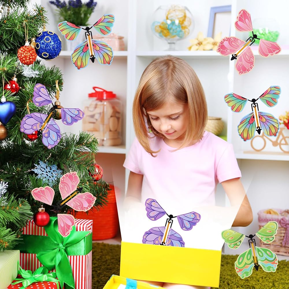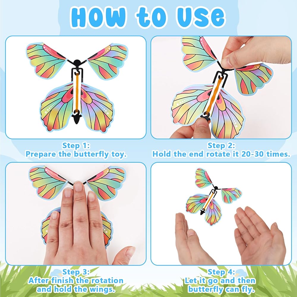 Hide this wind-up butterfly toy in a book page, greeting card, or gift, and colorful butterflies will fly out when you open it, flying butterflies are perfect as birthday gift cards for girlfriend, child or any butterfly lover.